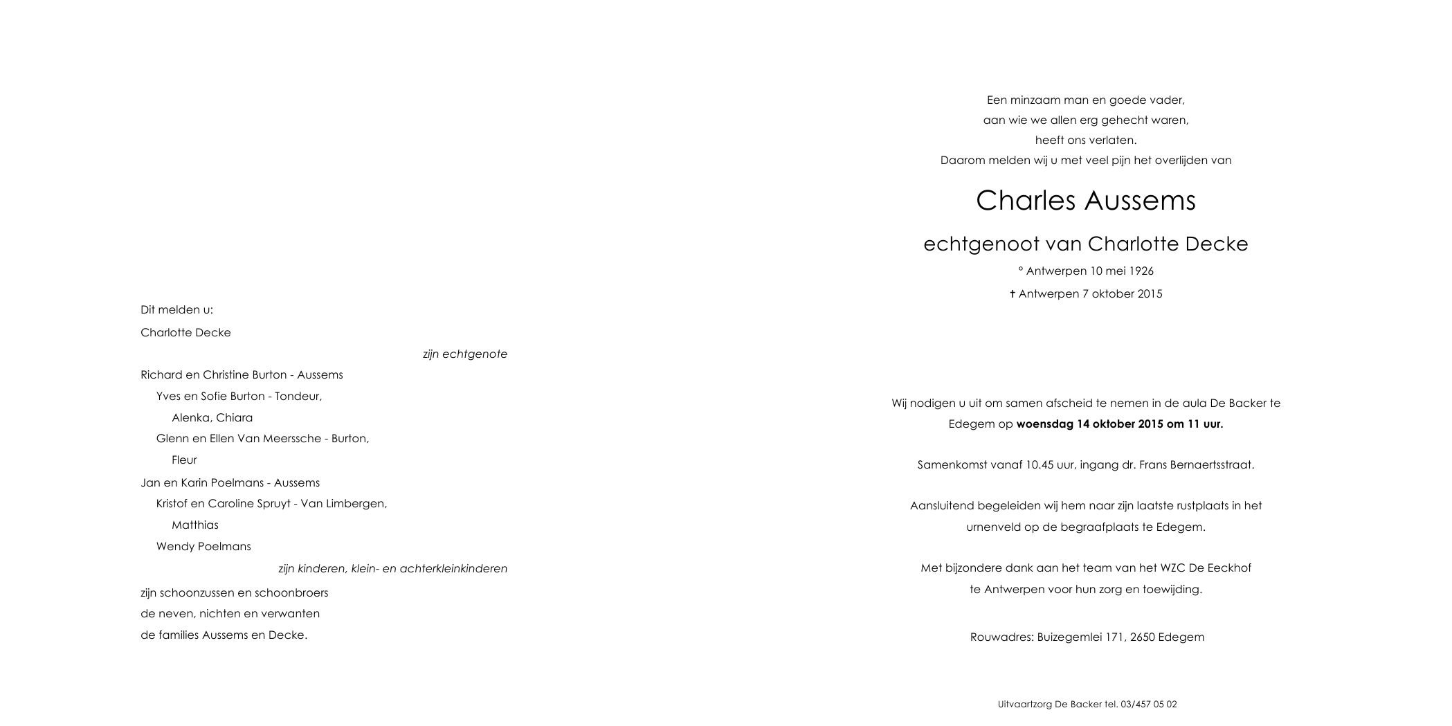 Overleden te Antwerpen (2000) op woensdag 7 oktober 2015 op 89-jarige leeftijd