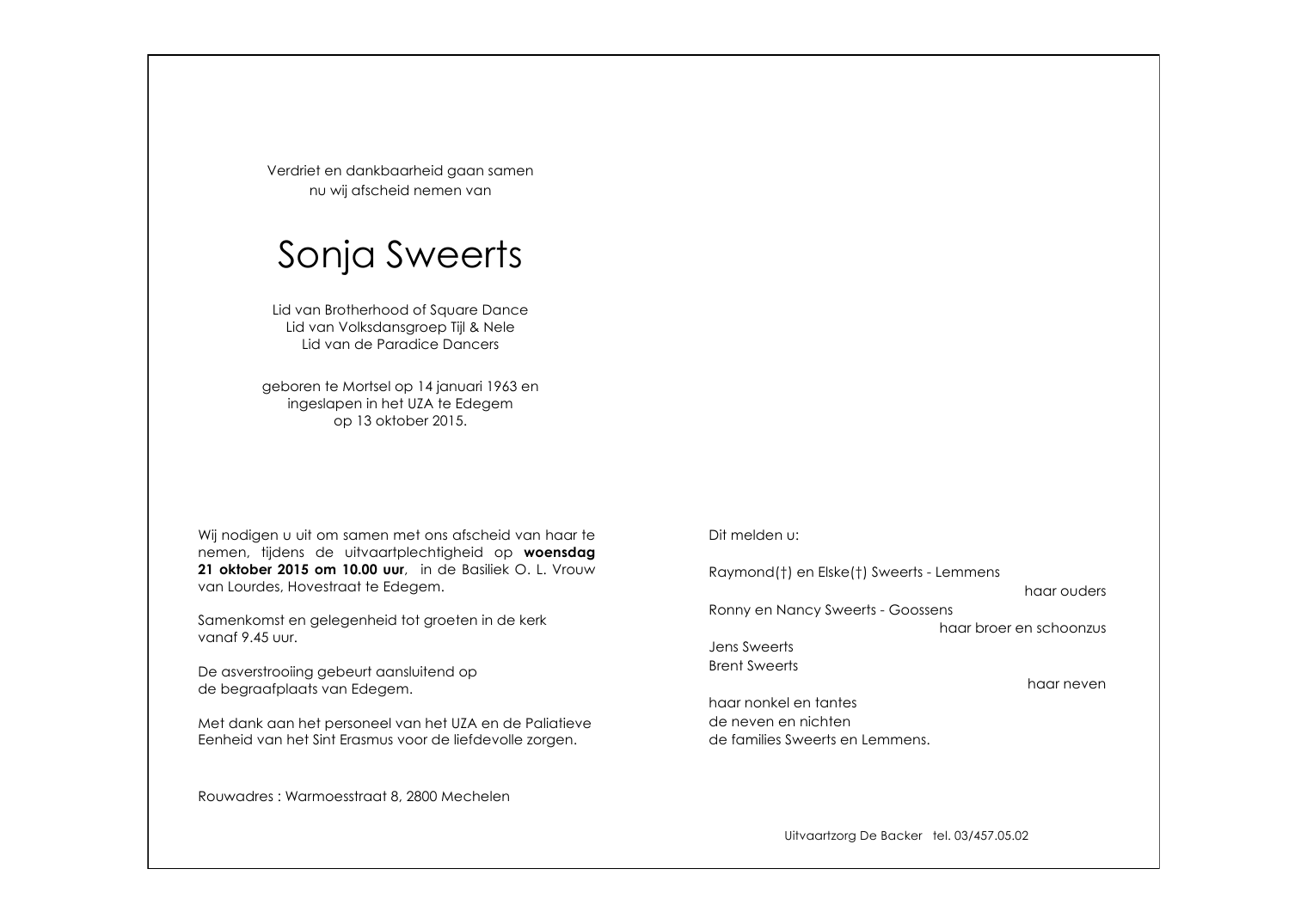 Overleden te Edegem (2650) op dinsdag 13 oktober 2015 op 52-jarige leeftijd