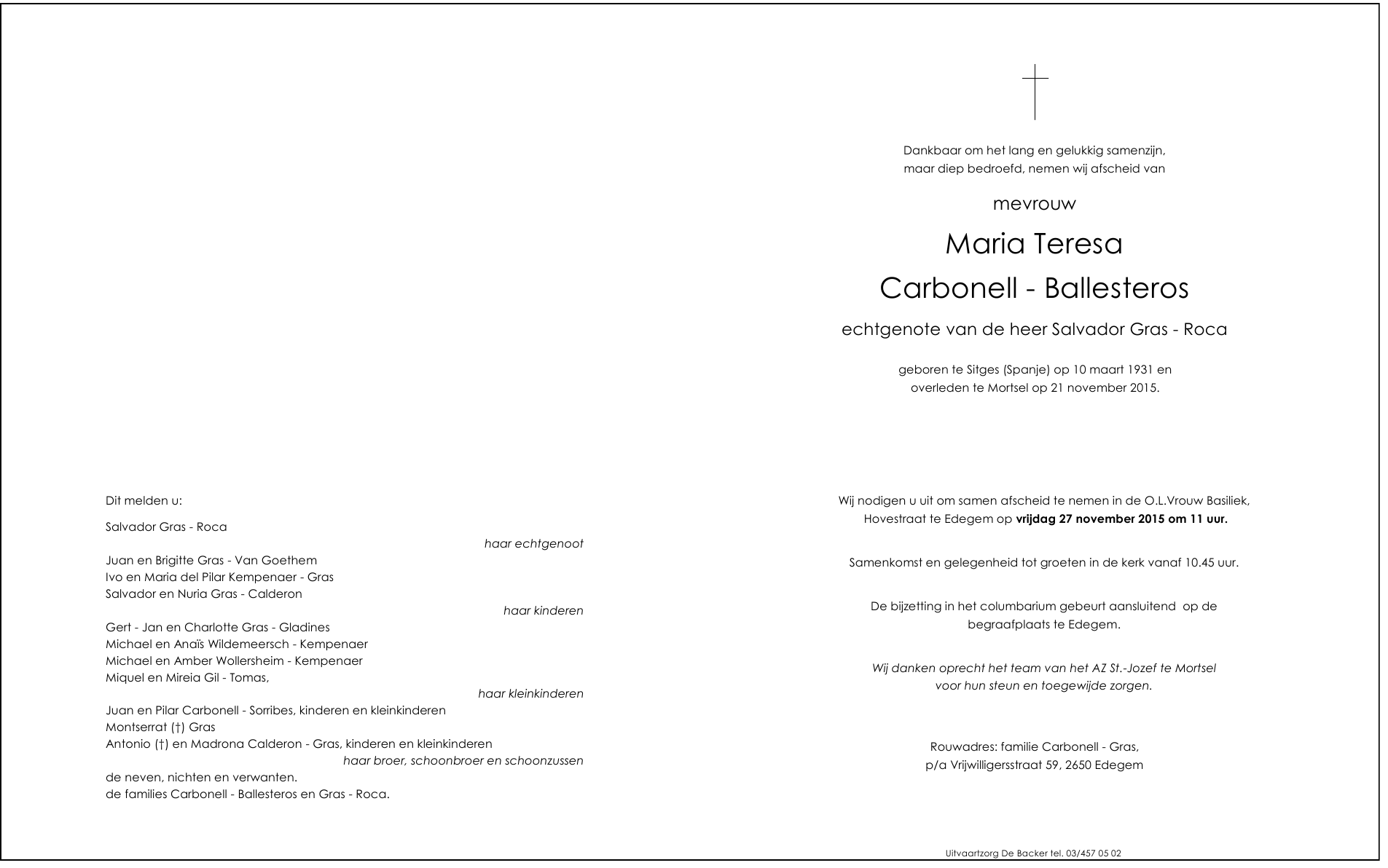 Overleden te Mortsel (2640) op zaterdag 21 november 2015 op 84-jarige leeftijd