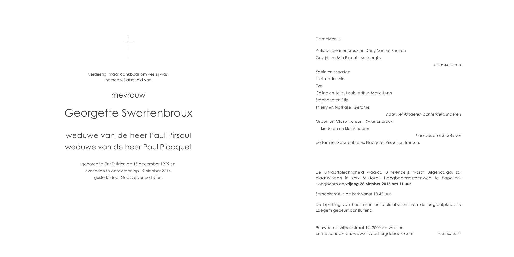 Overleden te Antwerpen (2000) op woensdag 19 oktober 2016 op 86-jarige leeftijd