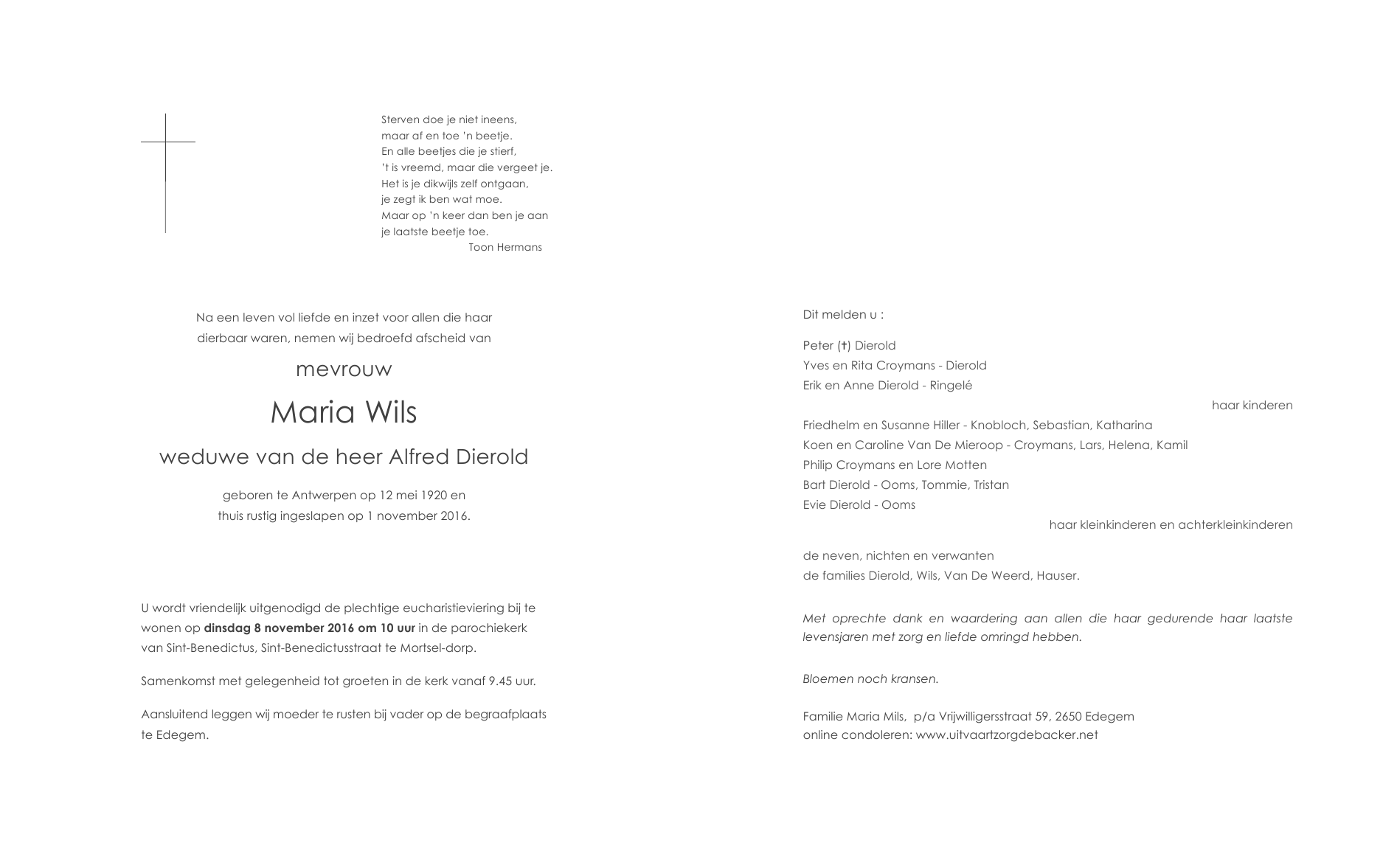 Overleden te Mortsel (2640) op dinsdag 1 november 2016 op 96-jarige leeftijd