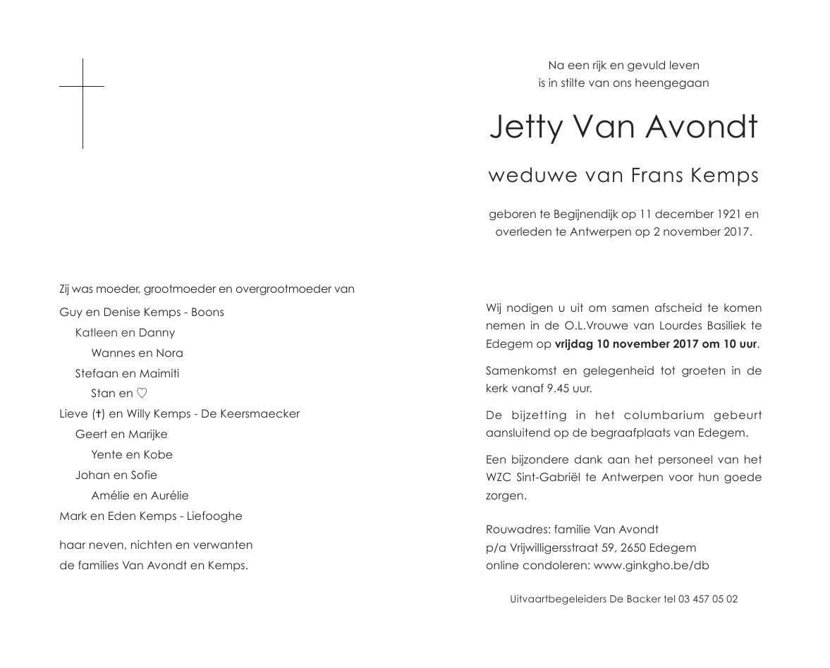 Overleden te Antwerpen (2018) op donderdag 2 november 2017 op 95-jarige leeftijd