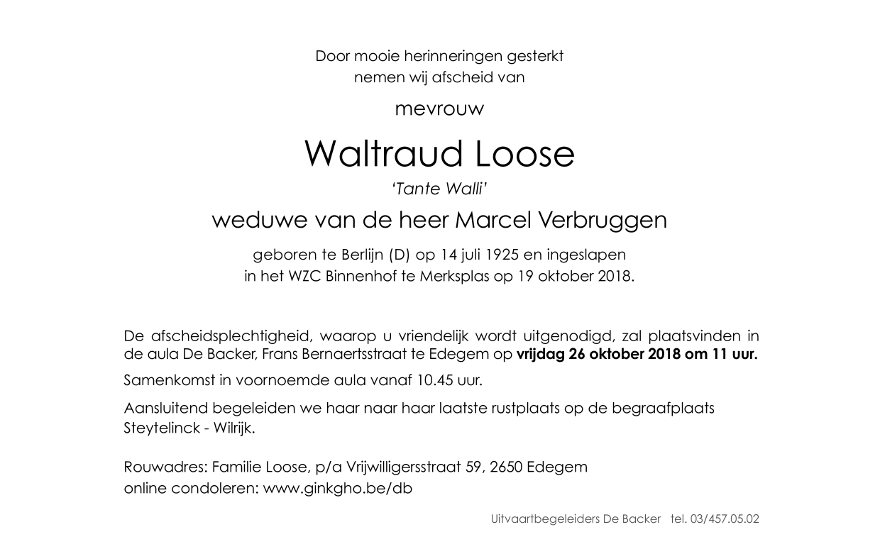 Overleden te Merksplas (2330) op vrijdag 19 oktober 2018 op 93-jarige leeftijd