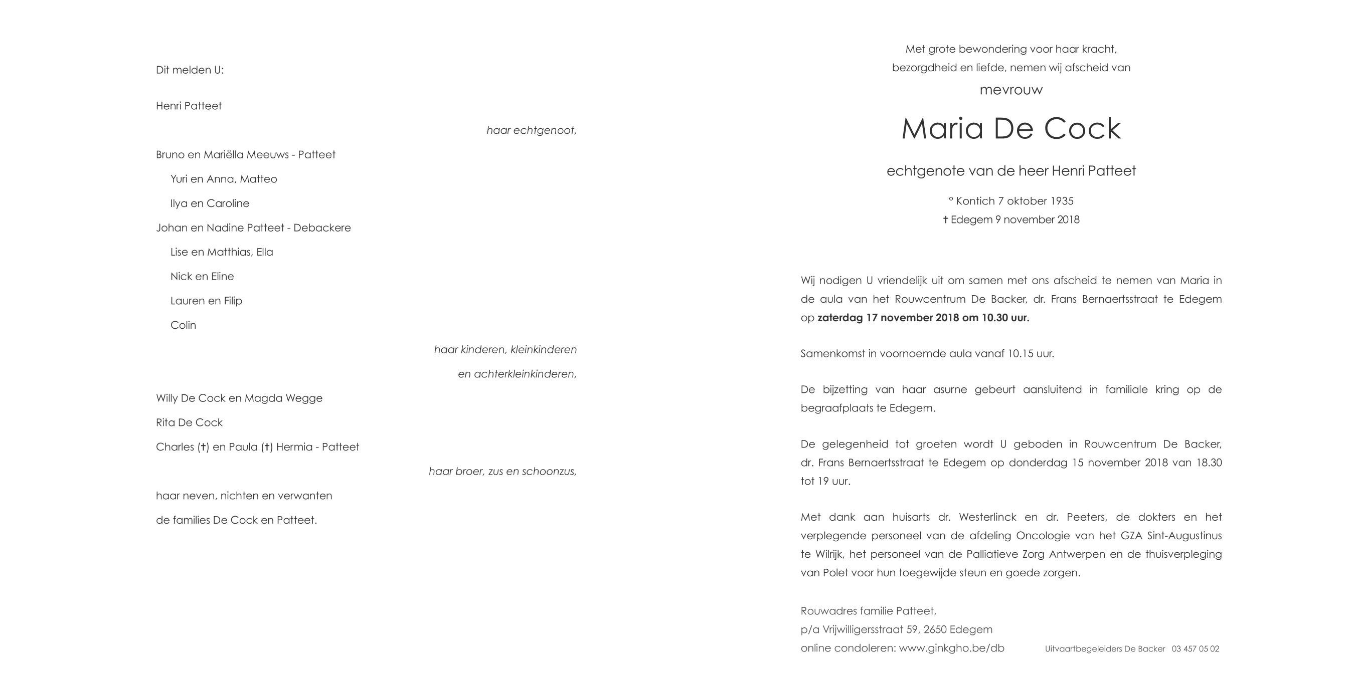 Overleden te Edegem (2650) op vrijdag 9 november 2018 op 83-jarige leeftijd