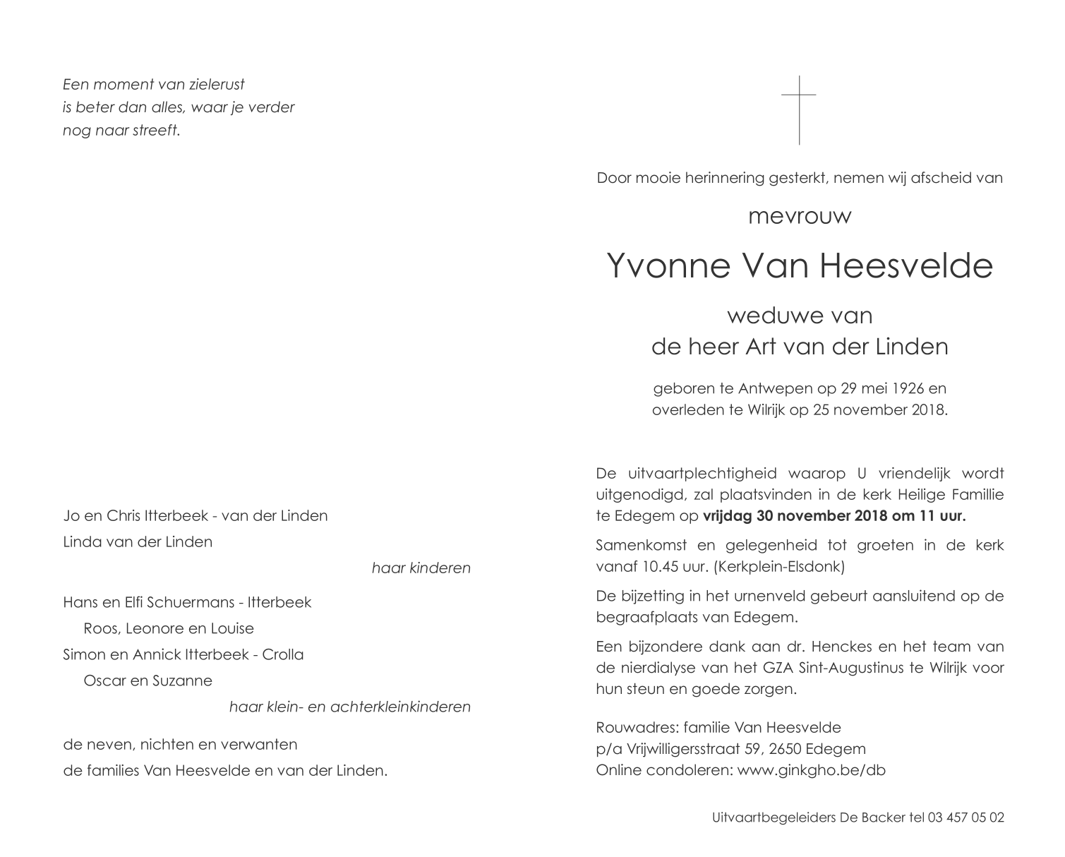 Overleden te Wilrijk (Antwerpen) (2610) op zondag 25 november 2018 op 92-jarige leeftijd