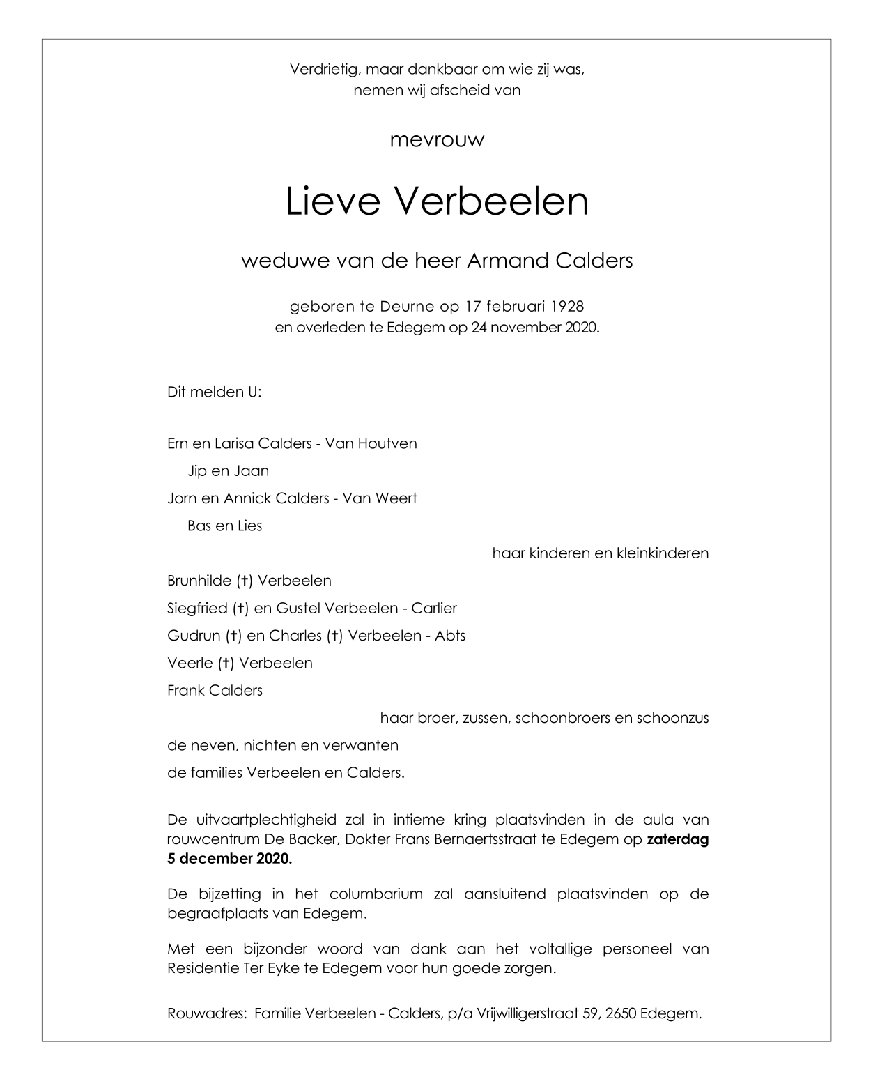 Overleden te Edegem (2650) op dinsdag 24 november 2020 op 92-jarige leeftijd