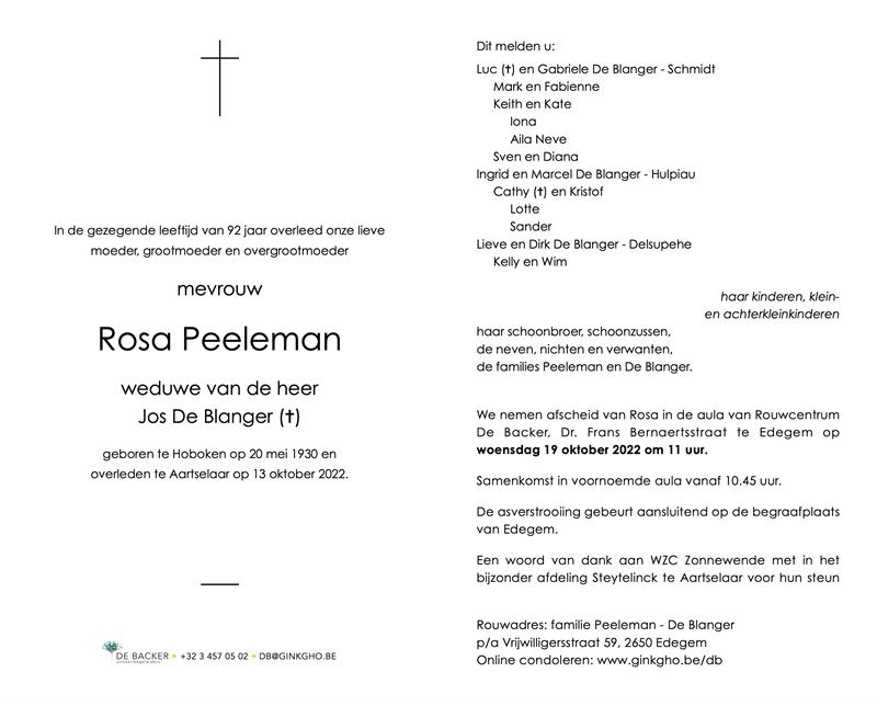 Overleden te Aartselaar (2630) op donderdag 13 oktober 2022 op 92-jarige leeftijd