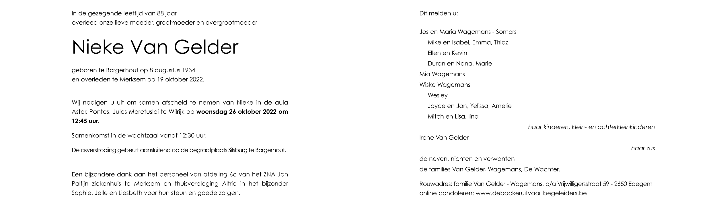 Overleden te Merksem (2170) op woensdag 19 oktober 2022 op 88-jarige leeftijd