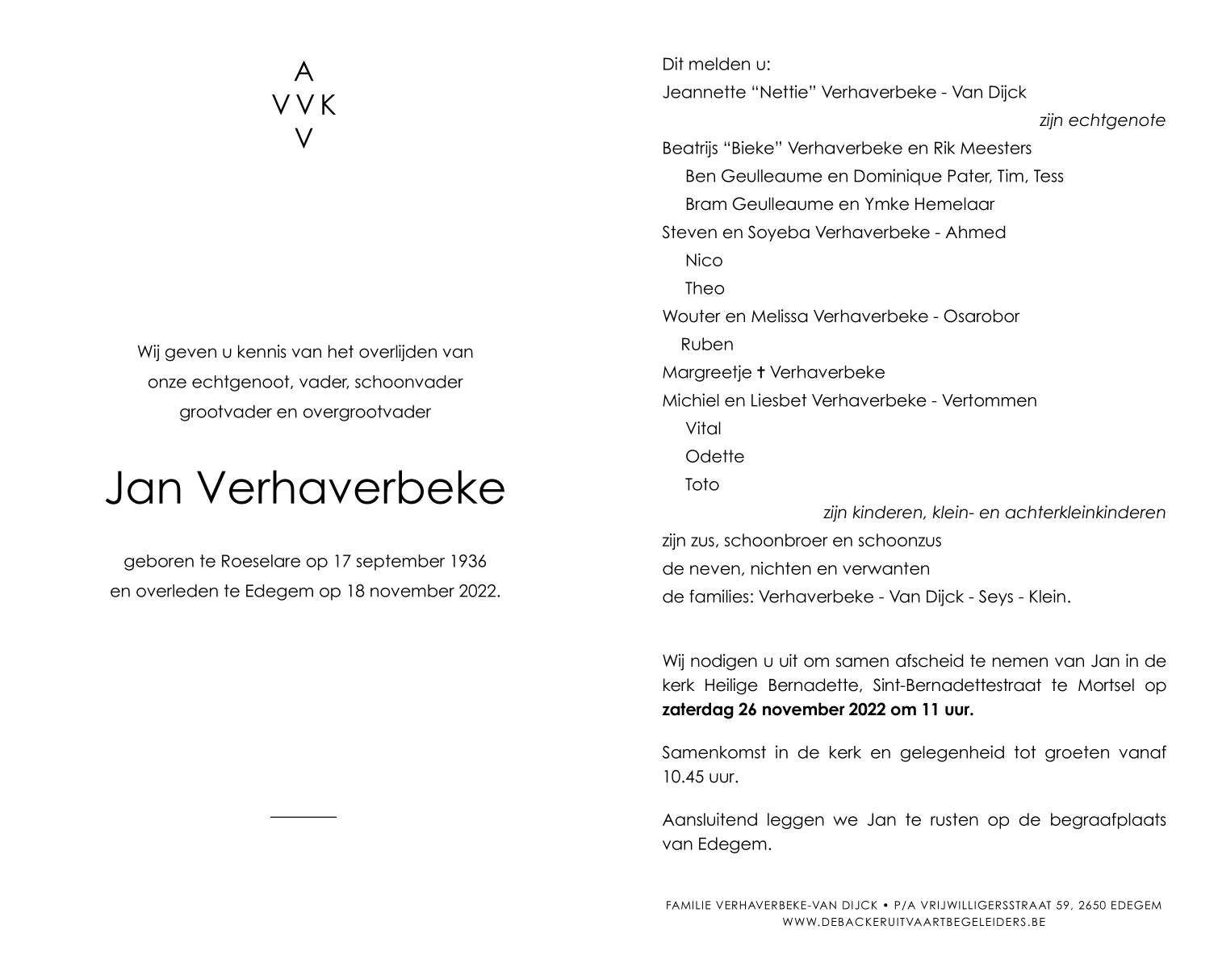 Overlijdensbericht Jan Verhaverbeke