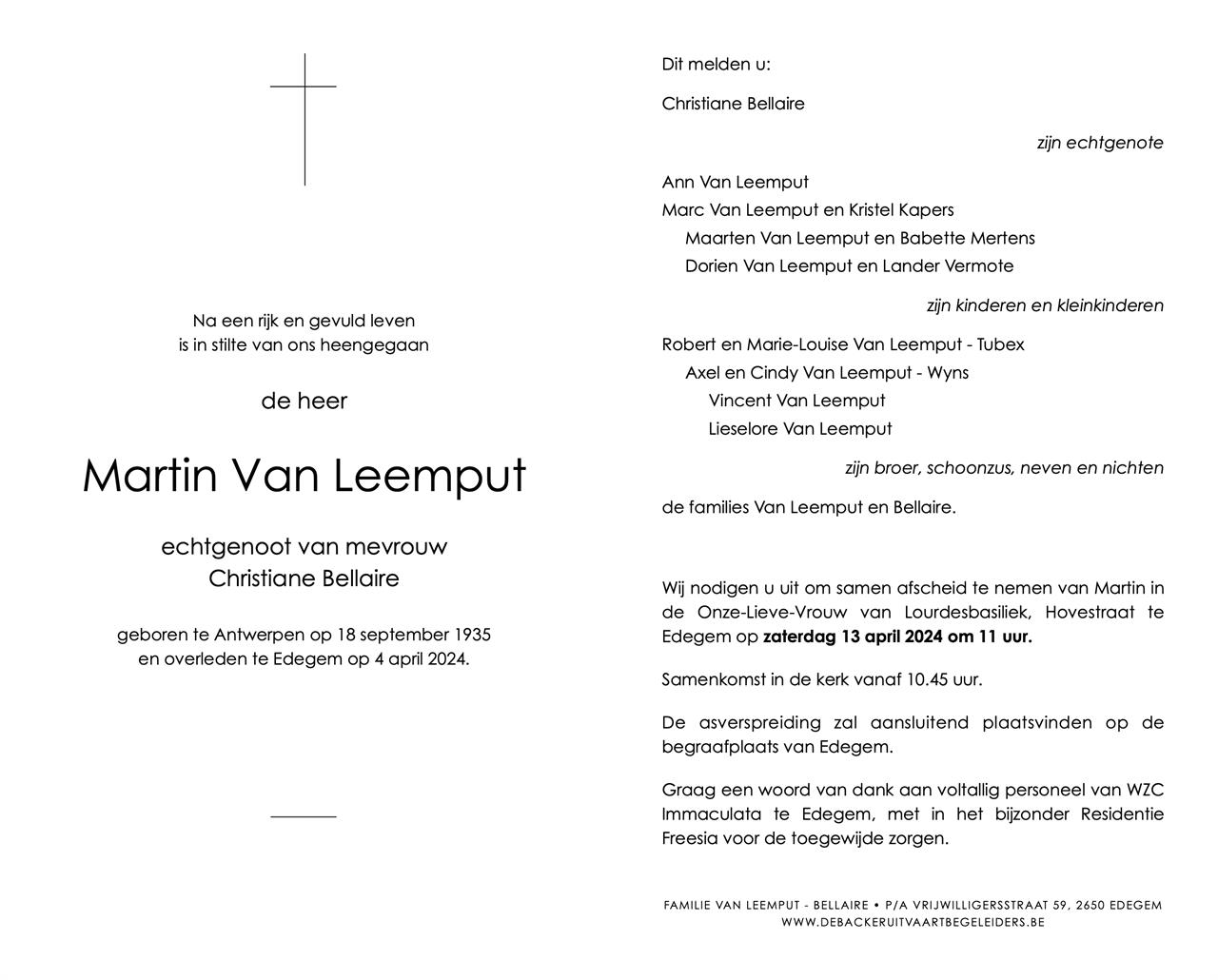 Overleden te Edegem (2650) op donderdag 4 april 2024 op 88-jarige leeftijd
