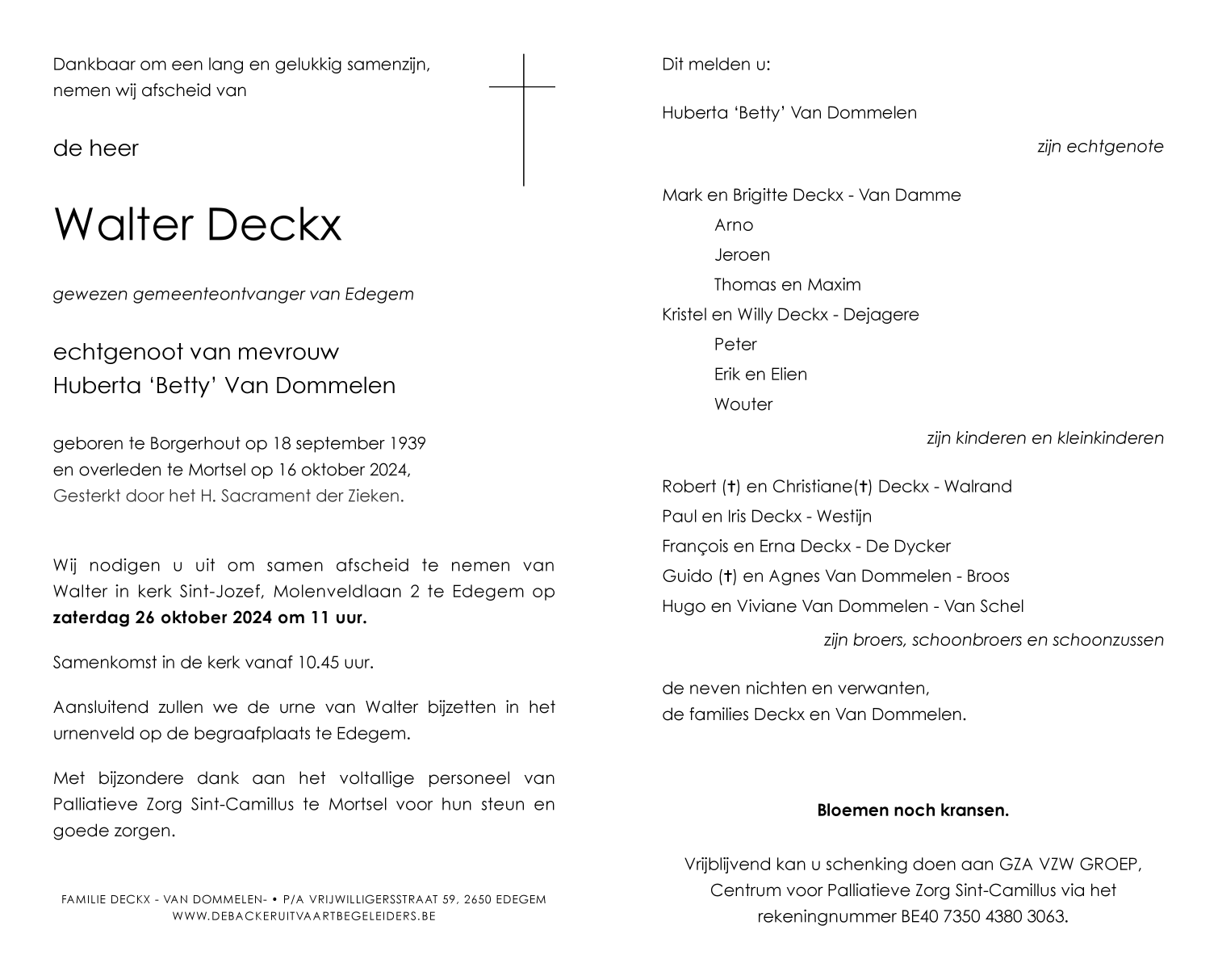 Overleden te Mortsel (2640) op woensdag 16 oktober 2024 op 85-jarige leeftijd