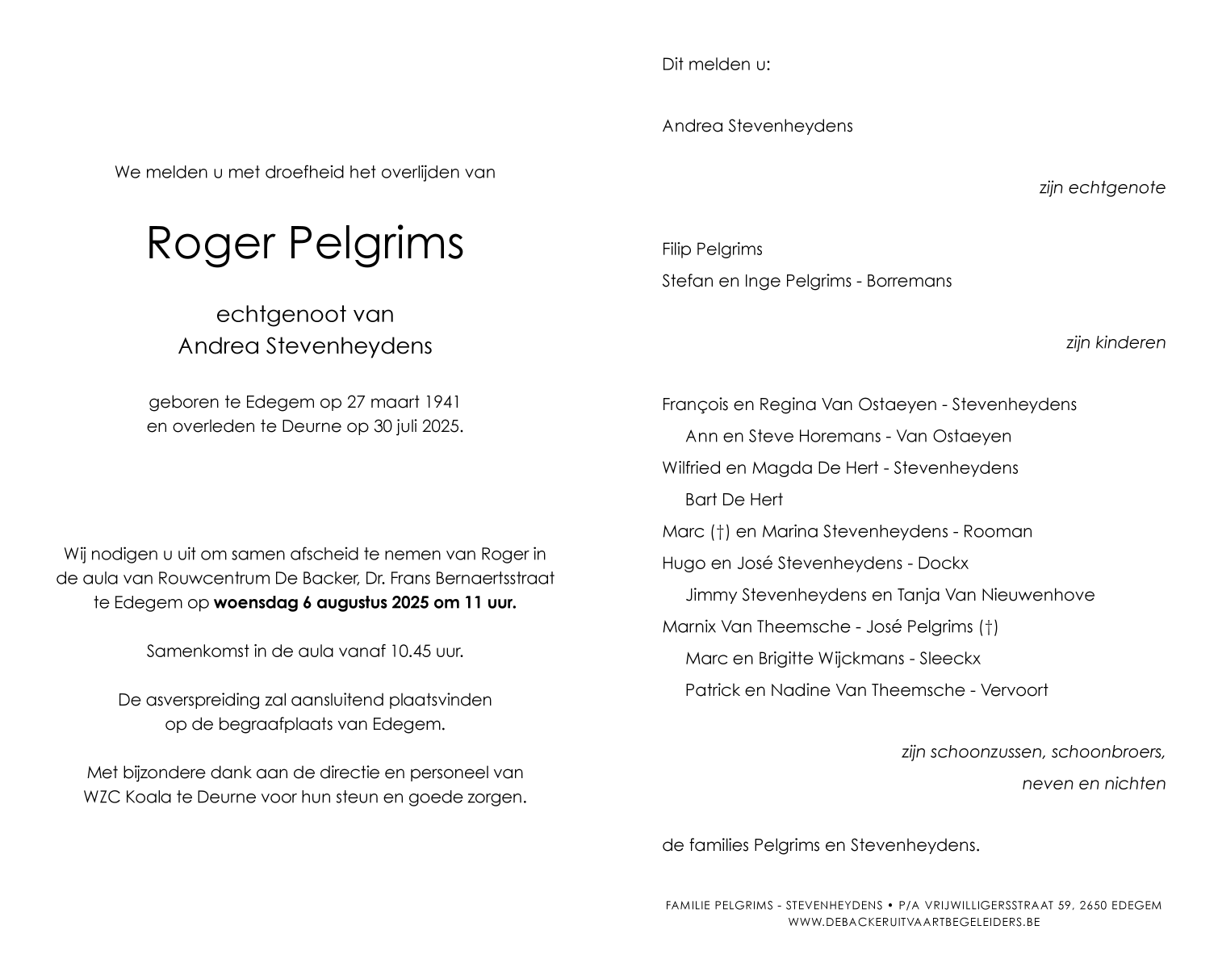 Overleden te Deurne (Antwerpen) (2100) op woensdag 30 juli 2025 op 84-jarige leeftijd