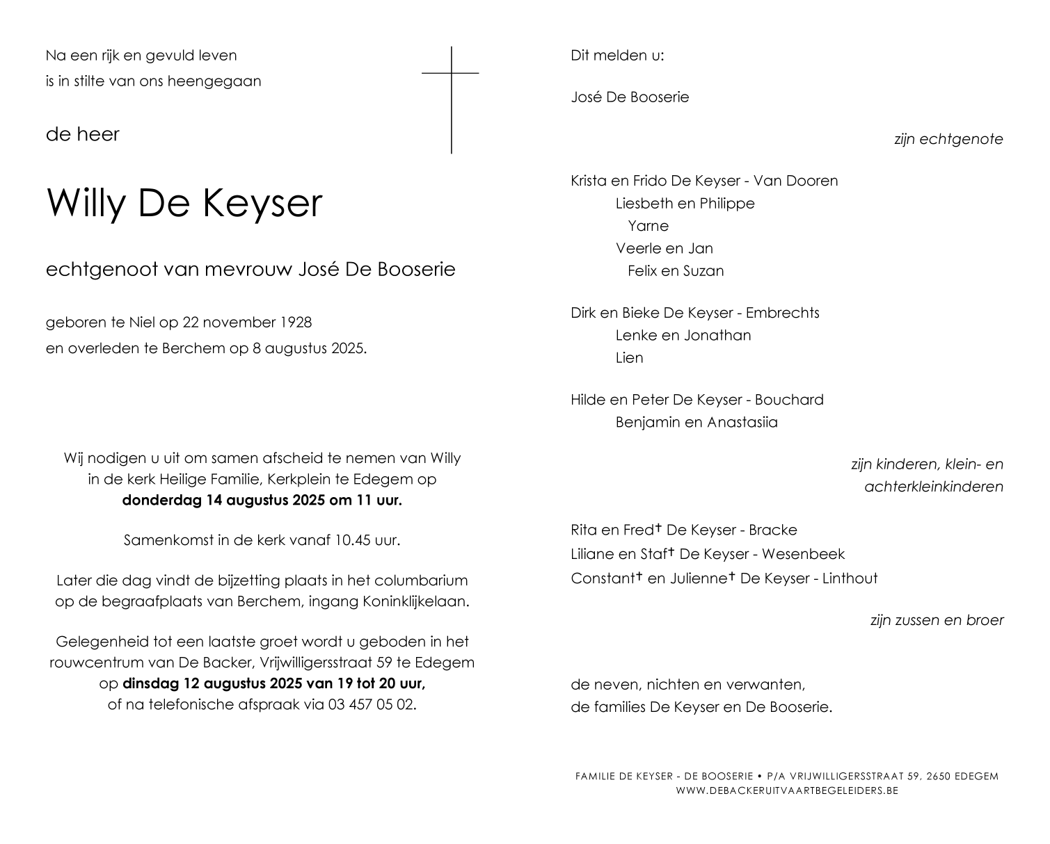 Overleden te Berchem (Antwerpen) (2600) op vrijdag 8 augustus 2025 op 96-jarige leeftijd