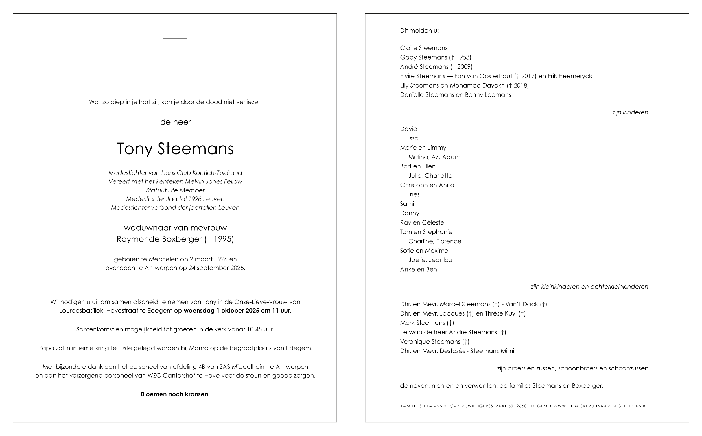 Overleden te Antwerpen (2020) op woensdag 24 september 2025 op 99-jarige leeftijd