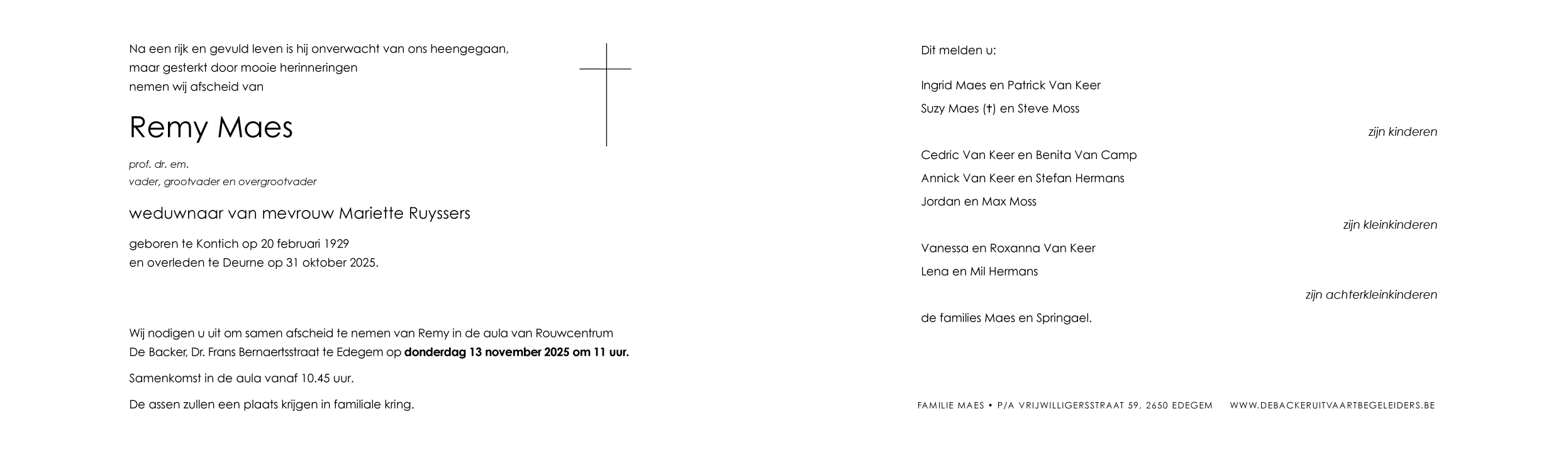 Overleden te Deurne (Antwerpen) (2100) op vrijdag 31 oktober 2025 op 96-jarige leeftijd