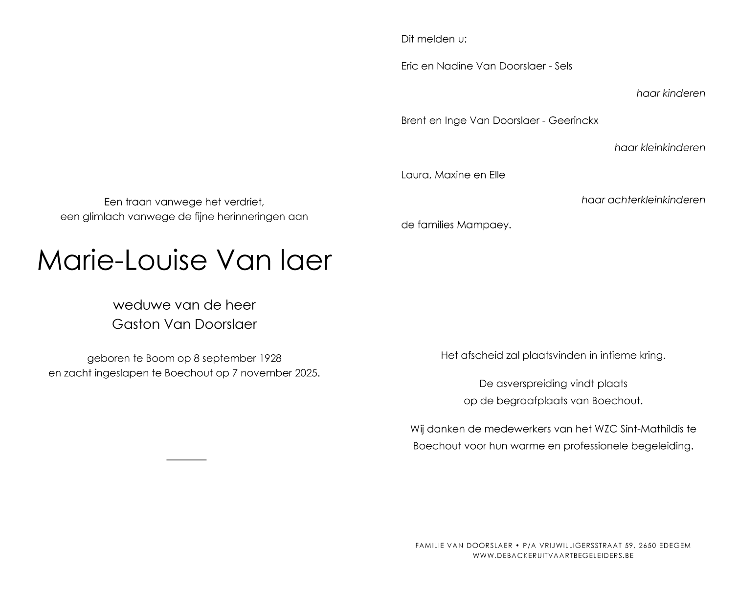Overleden te Boechout (2530) op vrijdag 7 november 2025 op 97-jarige leeftijd