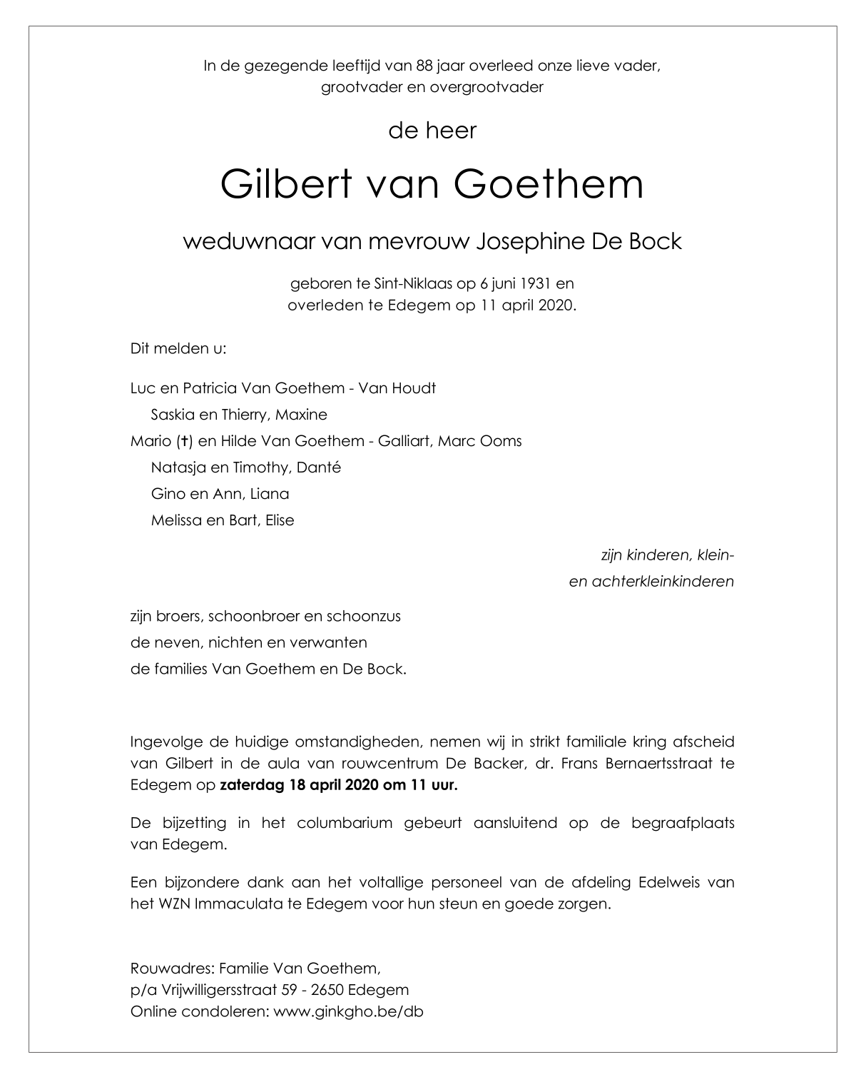 de heer Gilbert Van Goethem
