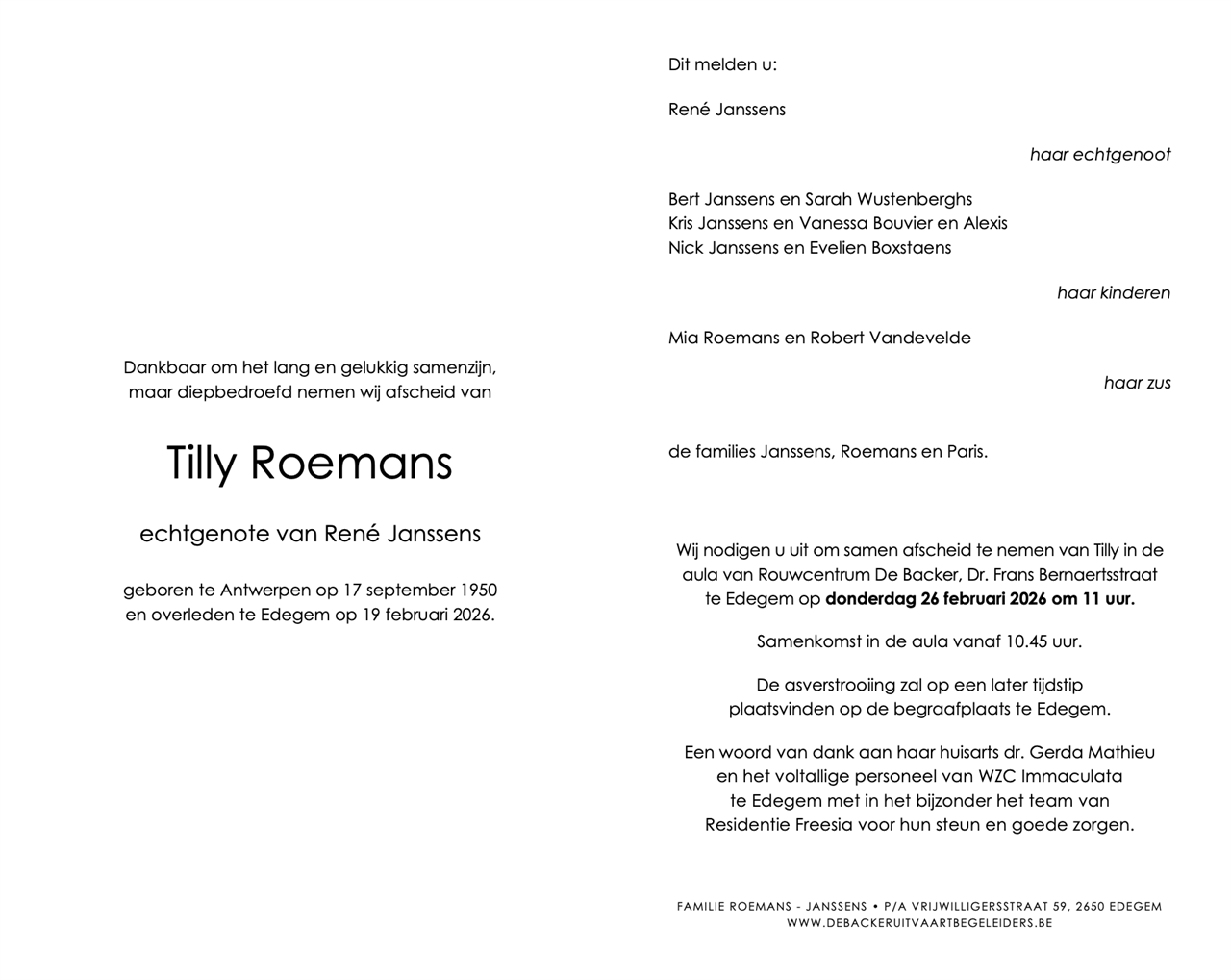 Overleden te Edegem (2650) op donderdag 19 februari 2026 op 75-jarige leeftijd