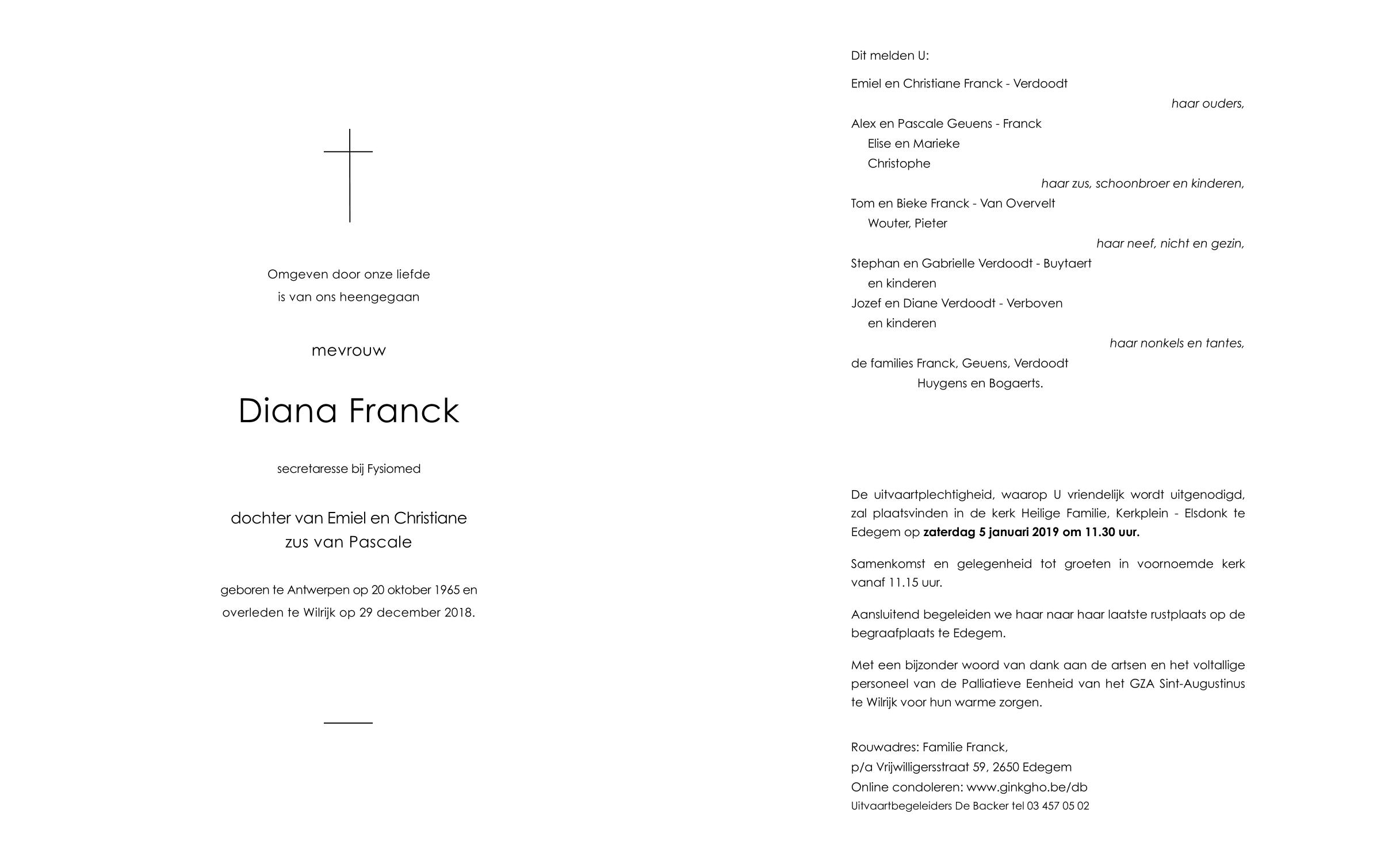 Overleden te Wilrijk (Antwerpen) (2610) op zaterdag 29 december 2018 op 53-jarige leeftijd