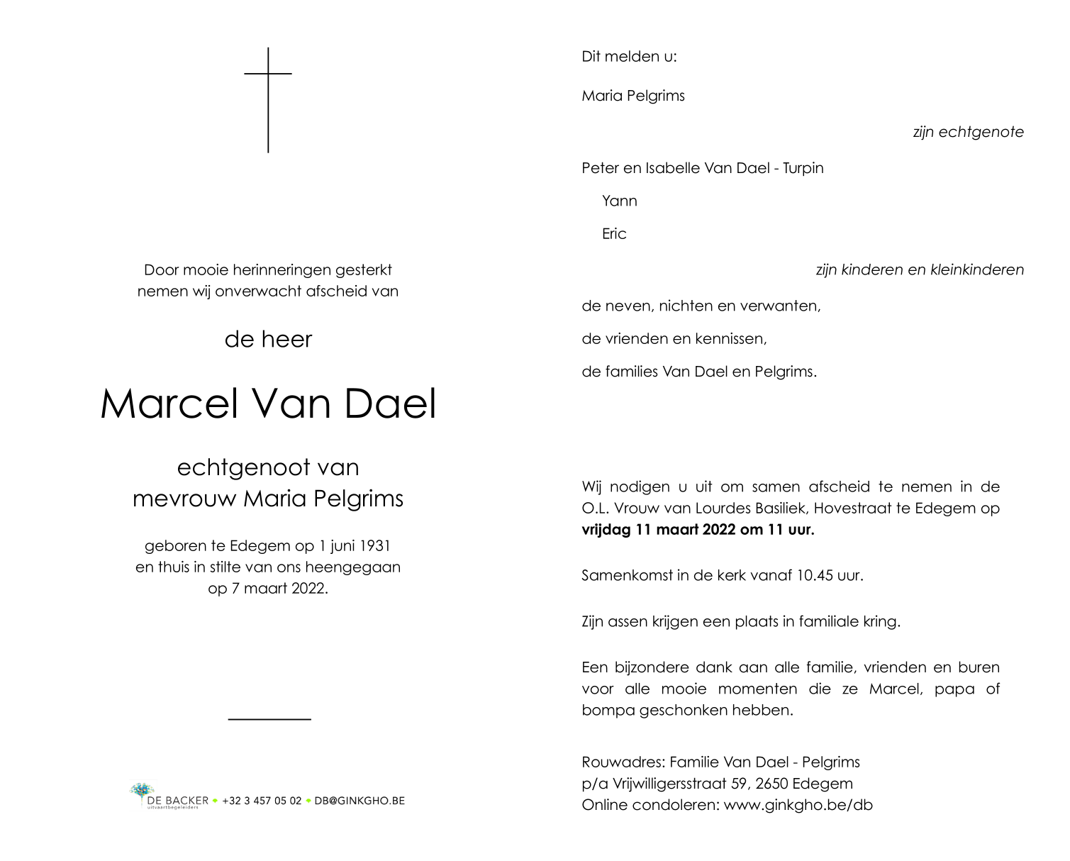 Overleden te Edegem (2650) op maandag 7 maart 2022 op 90-jarige leeftijd