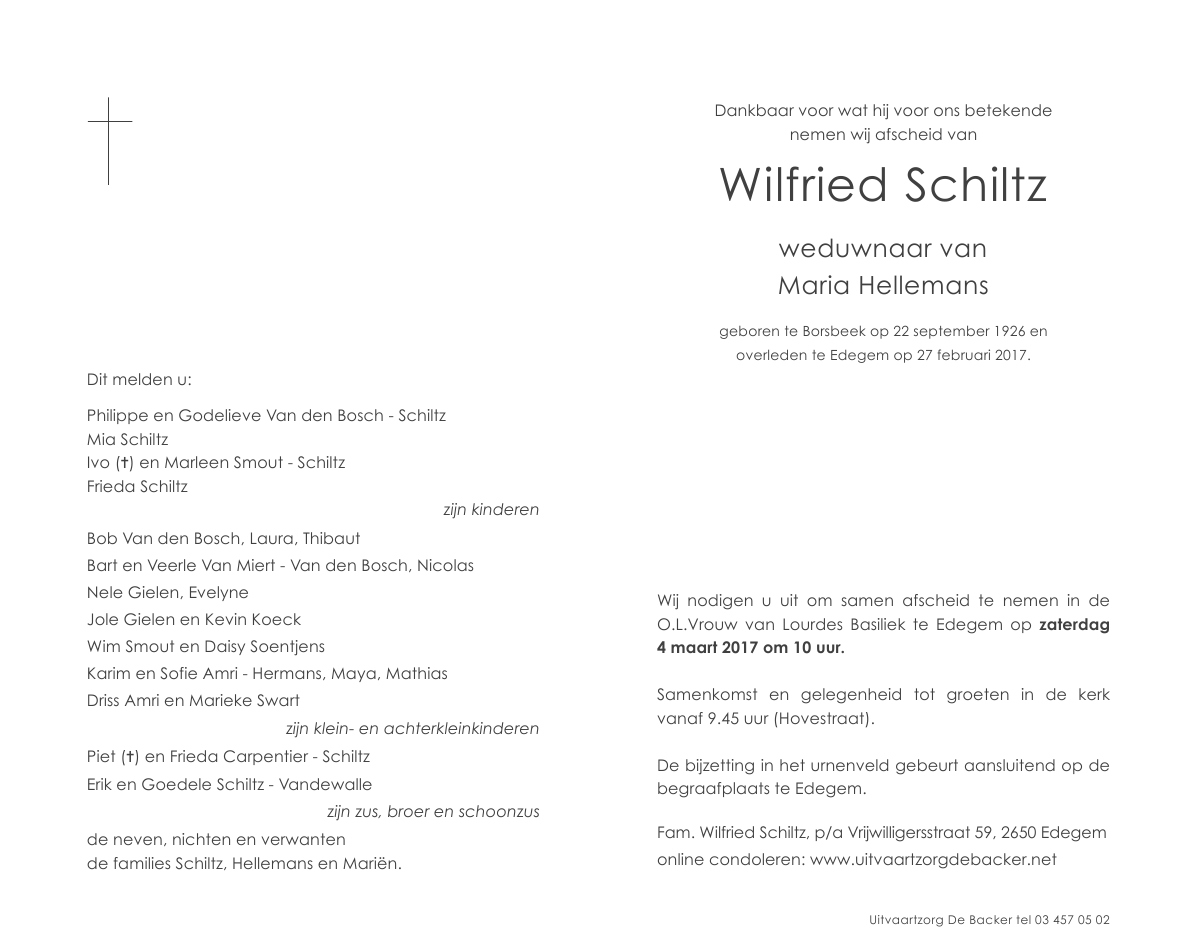 Overleden te Edegem (2650) op maandag 27 februari 2017 op 90-jarige leeftijd