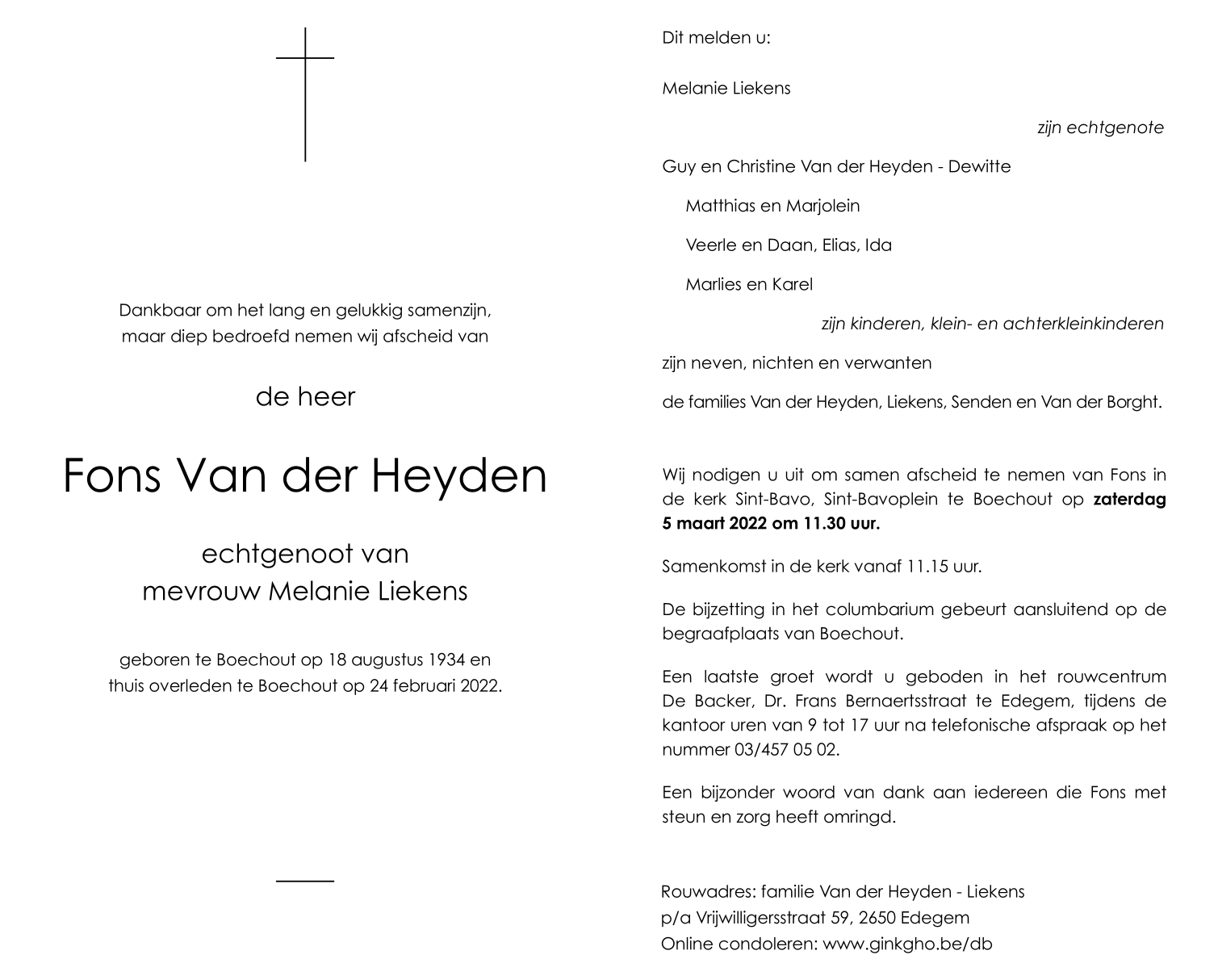 Overleden te Boechout (2530) op donderdag 24 februari 2022 op 87-jarige leeftijd
