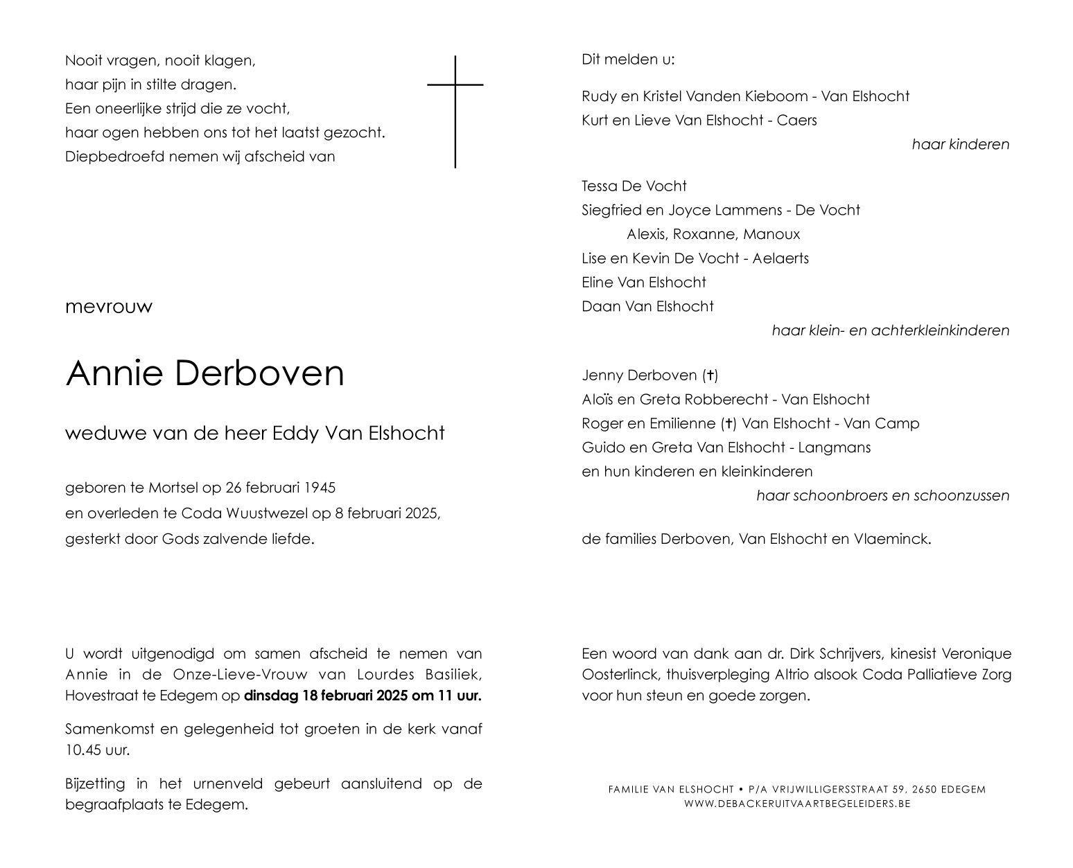 Overleden te Wuustwezel (2990) op zaterdag 8 februari 2025 op 79-jarige leeftijd