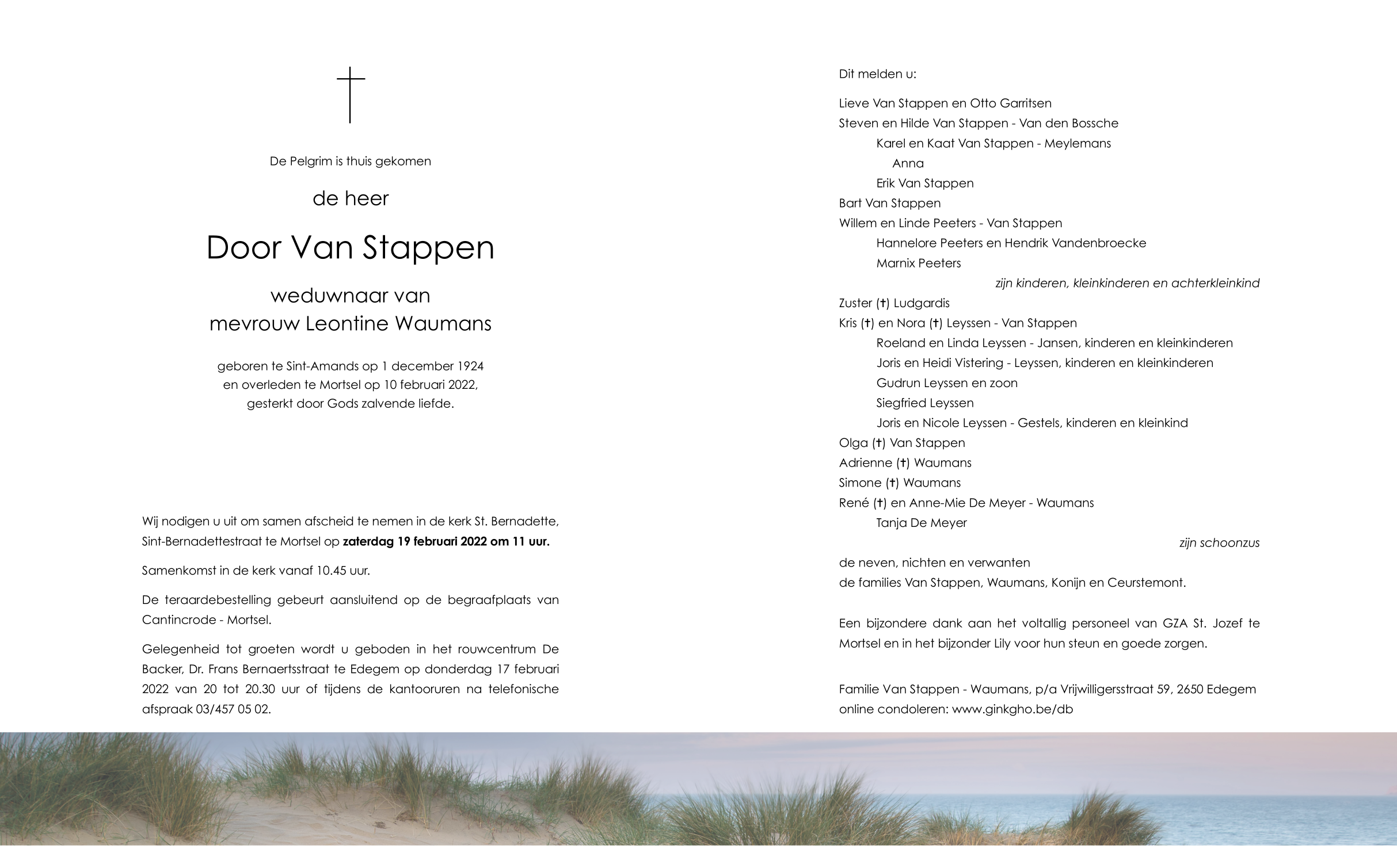 Overleden te Mortsel (2640) op donderdag 10 februari 2022 op 97-jarige leeftijd