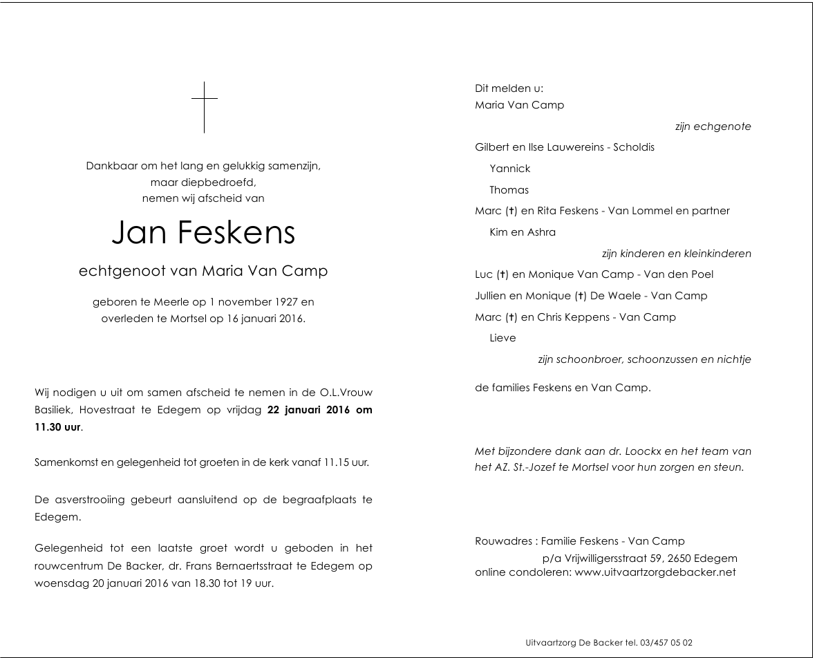Echtgenoot van Mevrouw Maria Elisabeth Van Camp