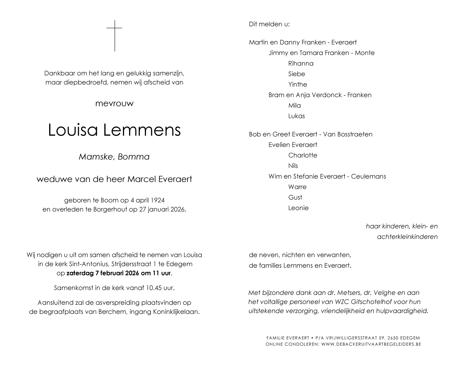 Overleden te Borgerhout (Antwerpen) (2140) op dinsdag 27 januari 2026 op 101-jarige leeftijd