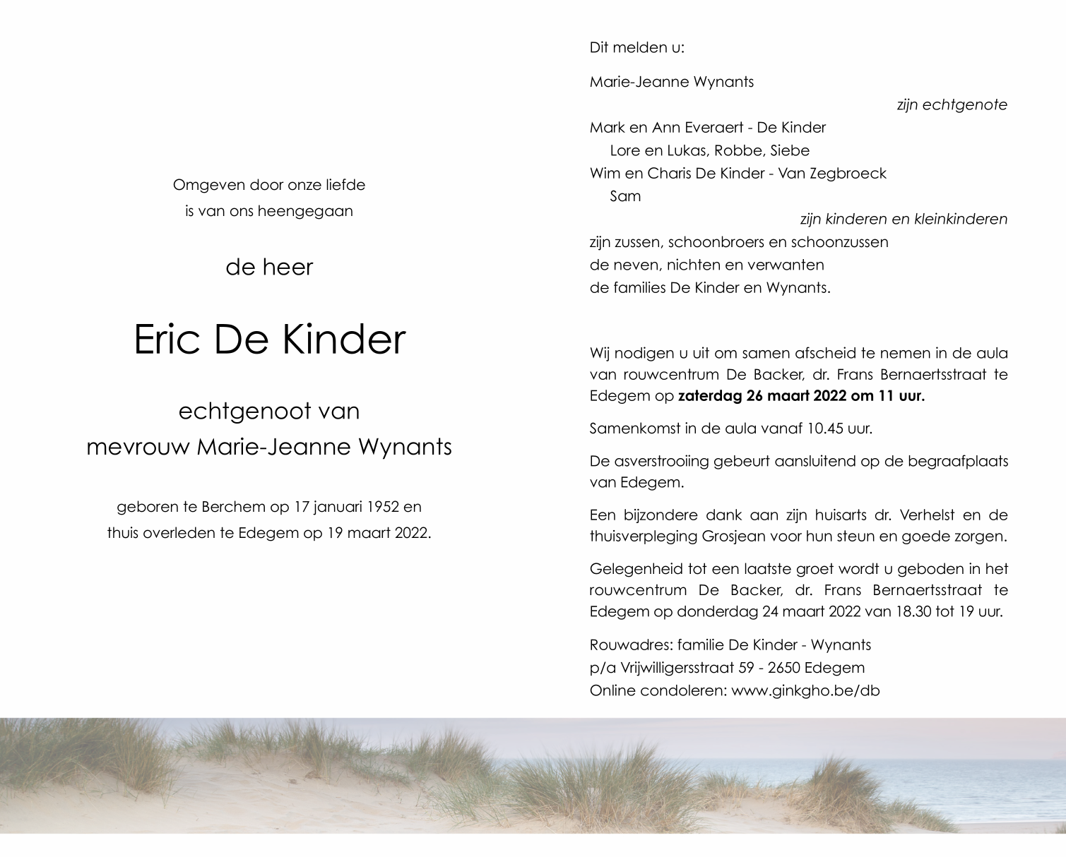 Overleden te Edegem (2650) op zaterdag 19 maart 2022 op 70-jarige leeftijd