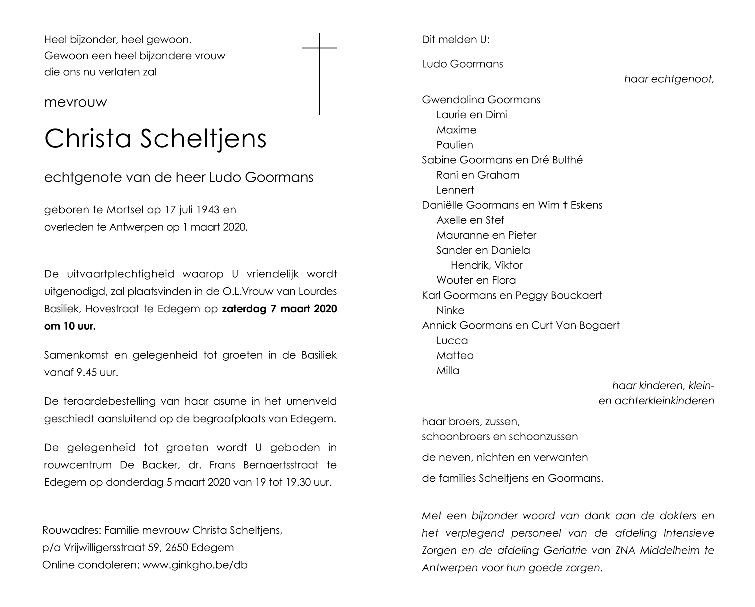 Overleden te Antwerpen (2020) op zondag 1 maart 2020 op 76-jarige leeftijd