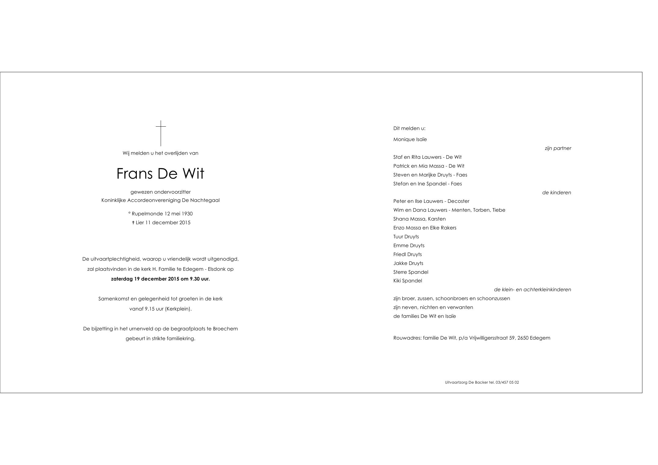 de heer Frans De Wit