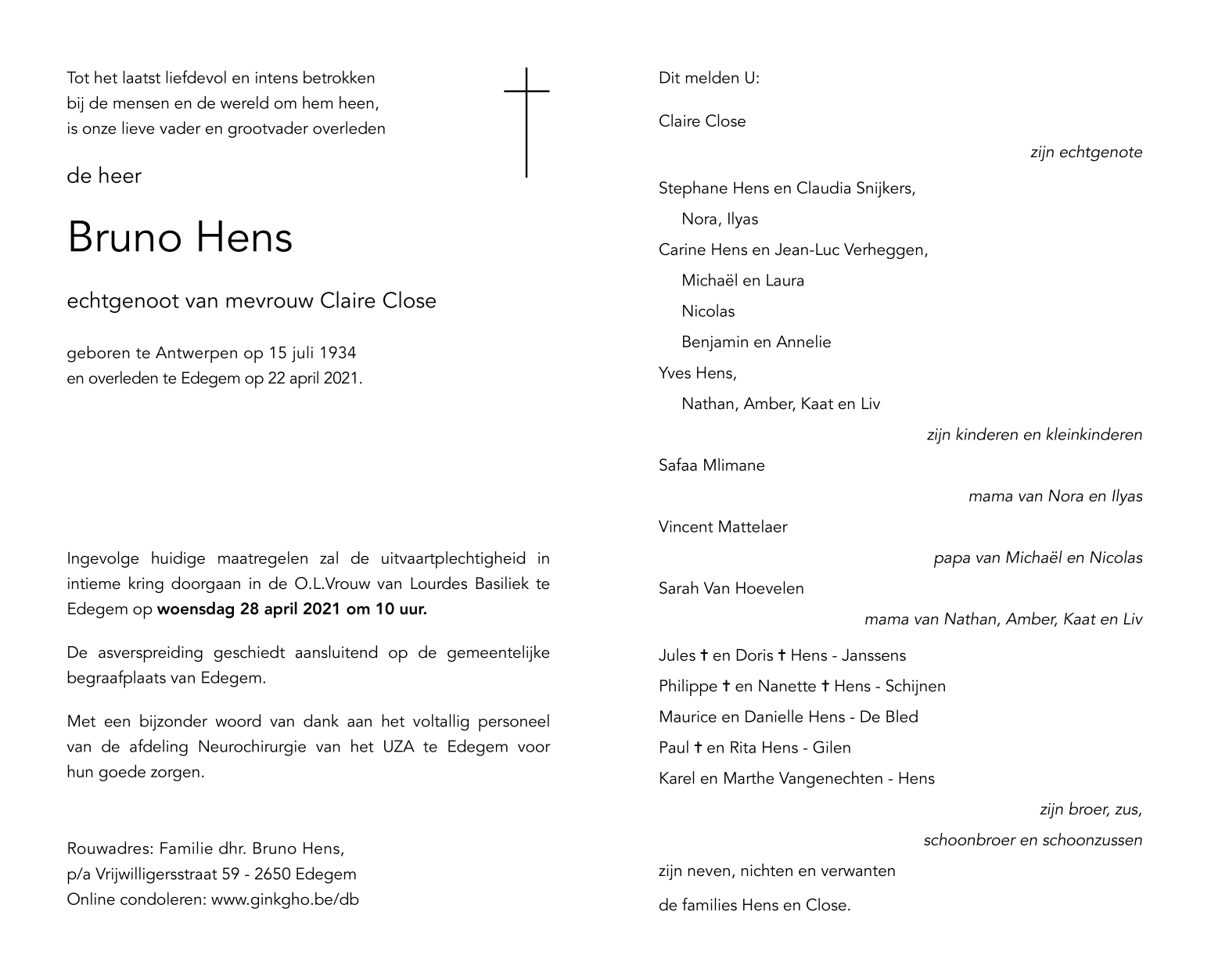 Overlijdensbericht Bruno Hens