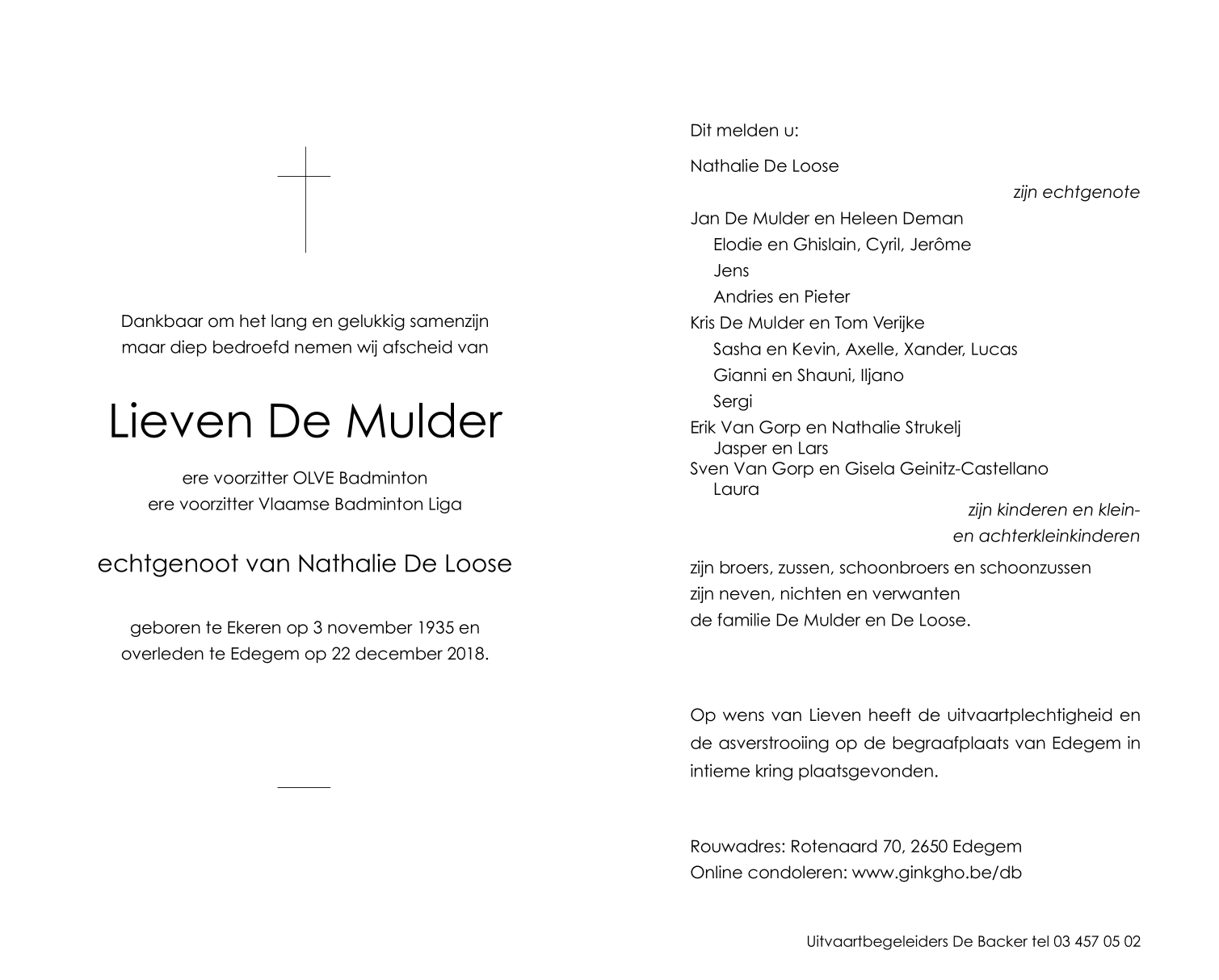Overleden te Edegem (2650) op zaterdag 22 december 2018 op 83-jarige leeftijd