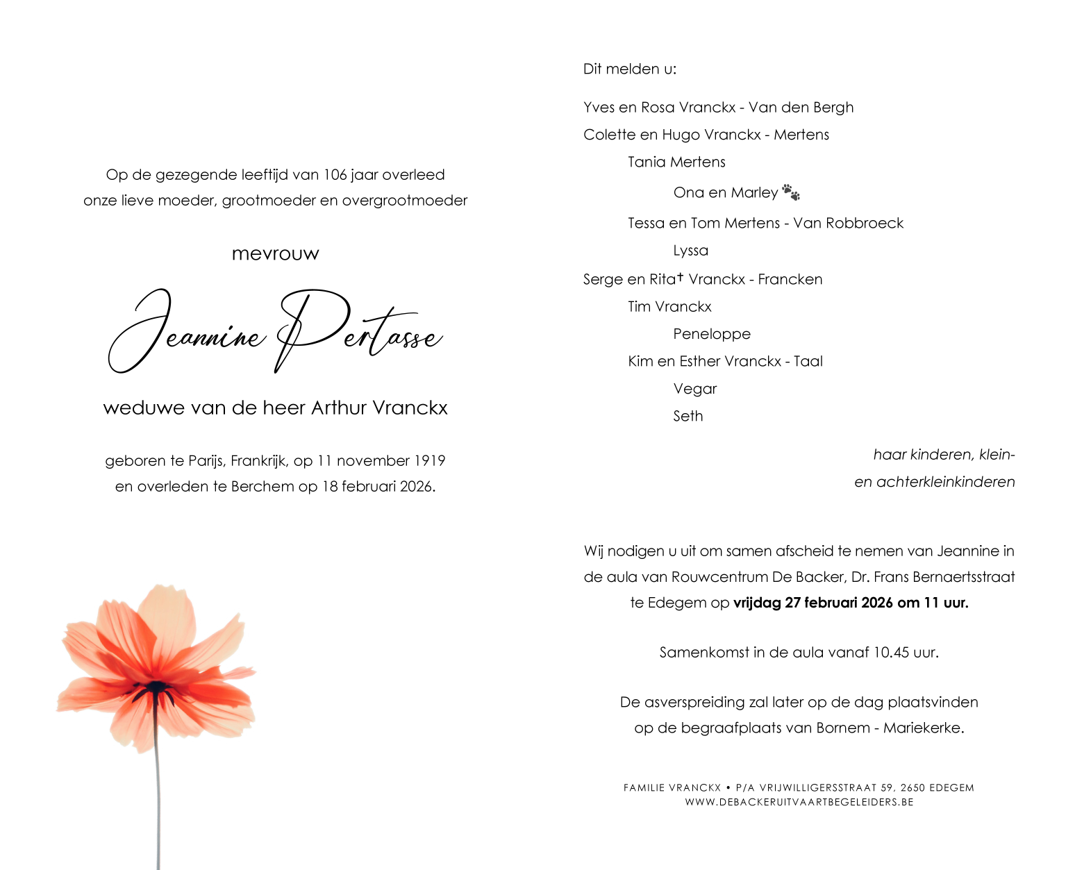 Overleden te Antwerpen (2020) op woensdag 18 februari 2026 op 106-jarige leeftijd