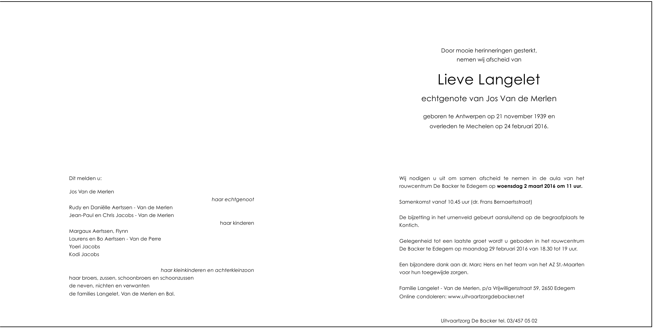 Overleden te Mechelen (2800) op woensdag 24 februari 2016 op 76-jarige leeftijd