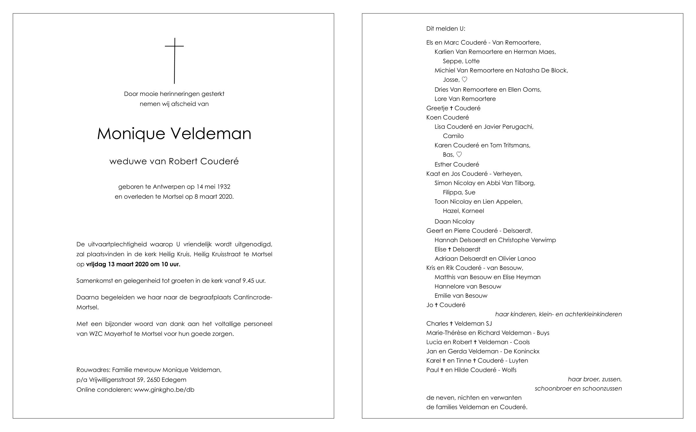 Overleden te Mortsel (2640) op zondag 8 maart 2020 op 87-jarige leeftijd