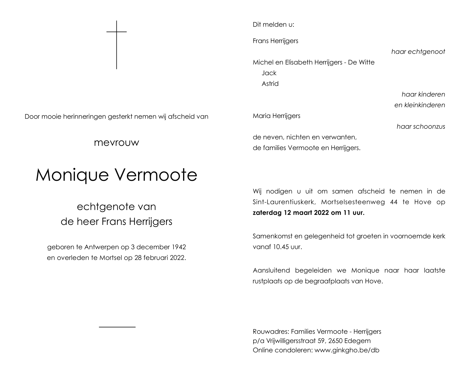 Overleden te Mortsel (2640) op maandag 28 februari 2022 op 79-jarige leeftijd