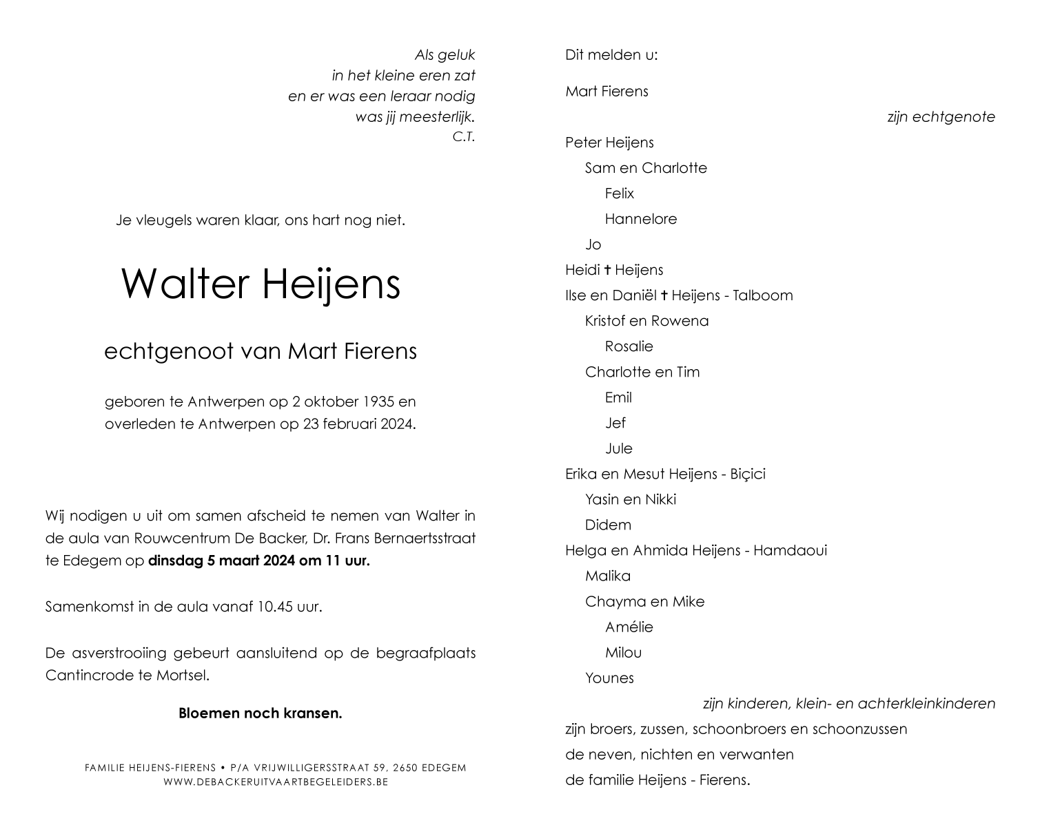 Overlijdensbericht van de heer Walter Heijens