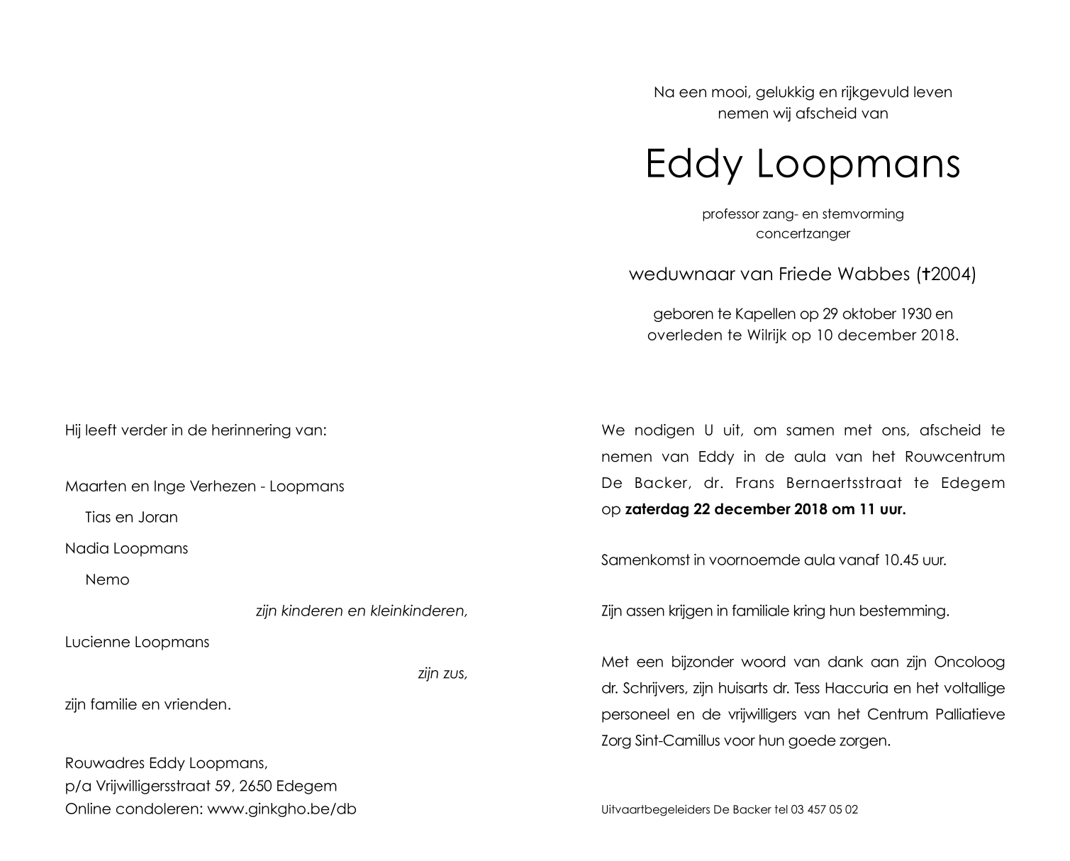 de heer Eddy Loopmans