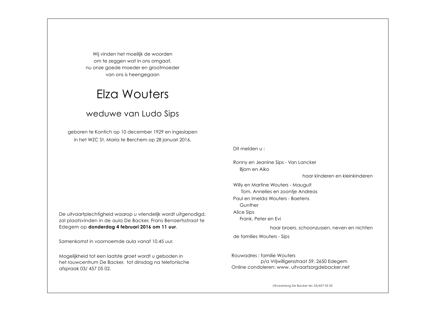Overleden te Berchem (Antwerpen) (2600) op donderdag 28 januari 2016 op 86-jarige leeftijd