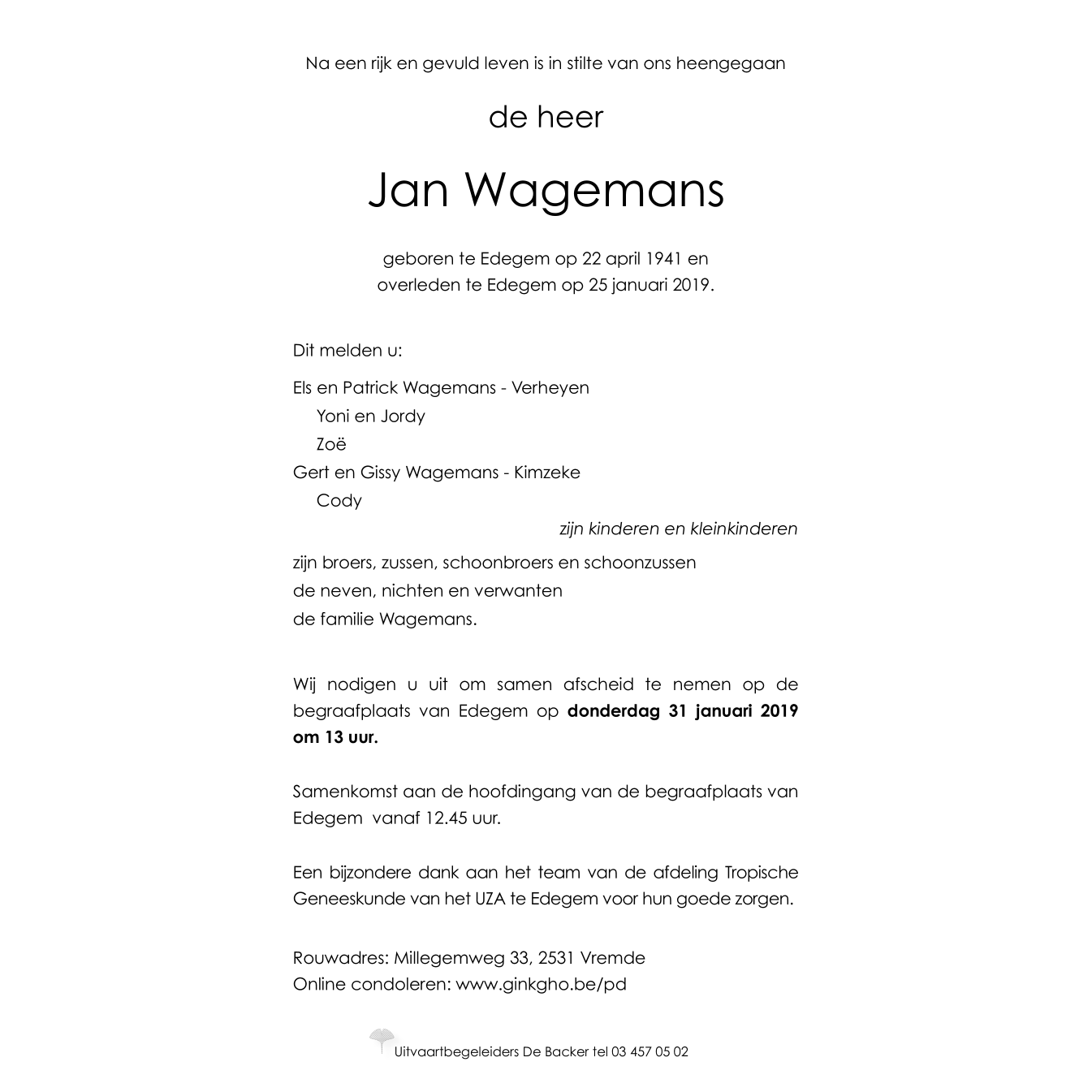 Overleden te Edegem (2650) op vrijdag 25 januari 2019 op 77-jarige leeftijd