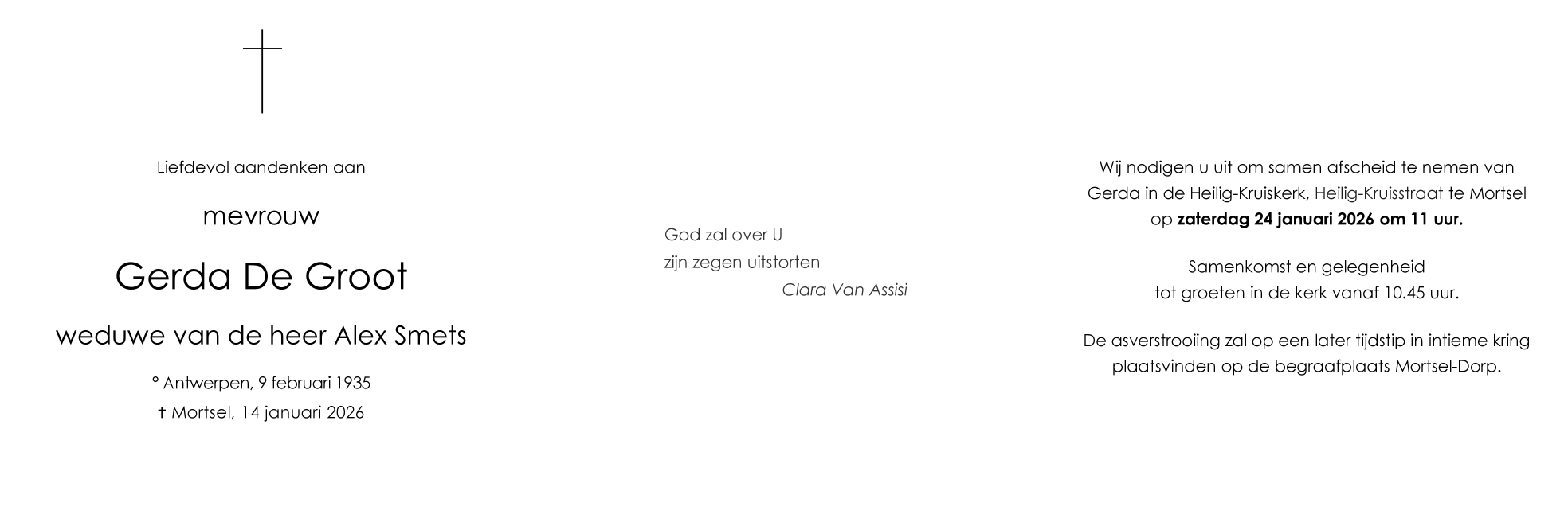 Overleden te Mortsel (2640) op woensdag 14 januari 2026 op 90-jarige leeftijd