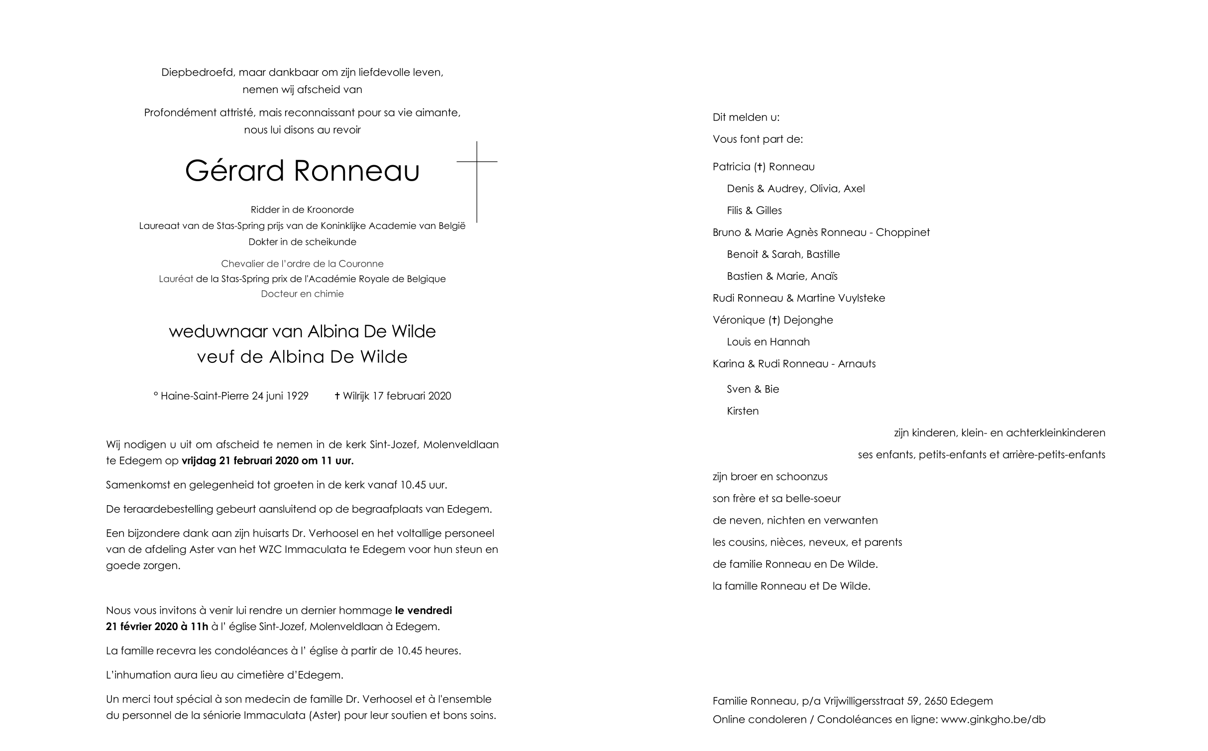 Overleden te Wilrijk (Antwerpen) (2610) op maandag 17 februari 2020 op 90-jarige leeftijd
