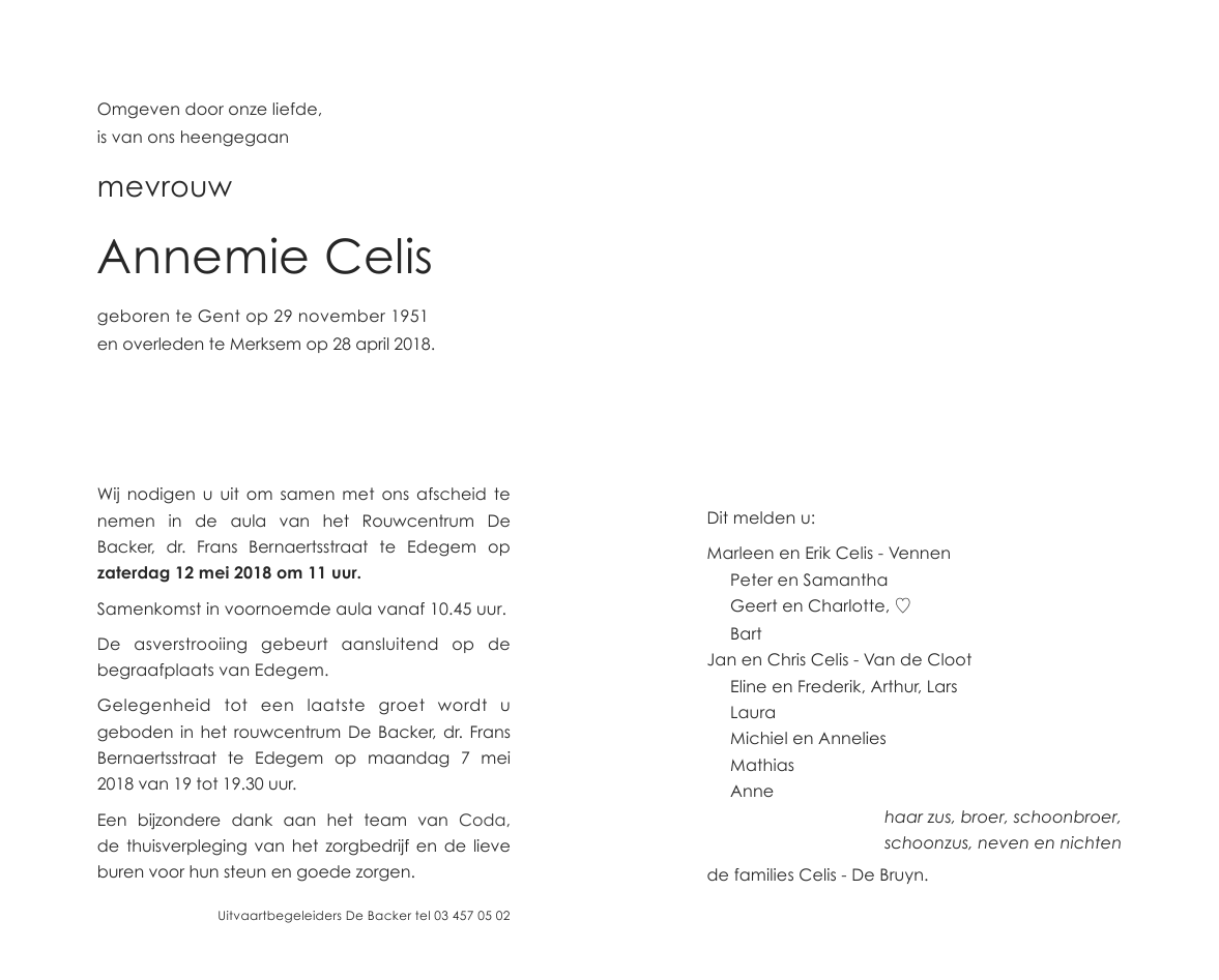 Overleden te Merksem (2170) op zaterdag 28 april 2018 op 66-jarige leeftijd