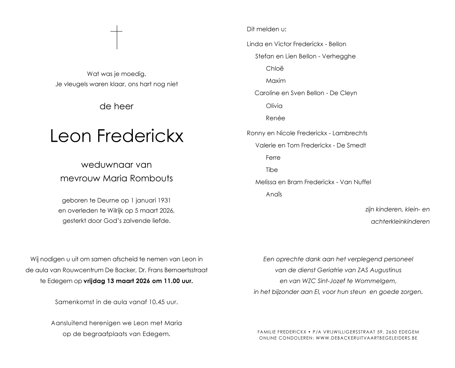 Overleden te Wilrijk (Antwerpen) (2610) op donderdag 5 maart 2026 op 95-jarige leeftijd