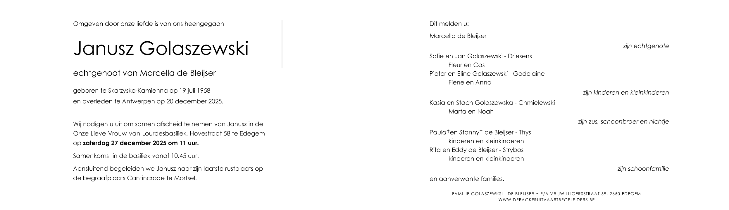 Overleden te Antwerpen (2060) op zaterdag 20 december 2025 op 67-jarige leeftijd