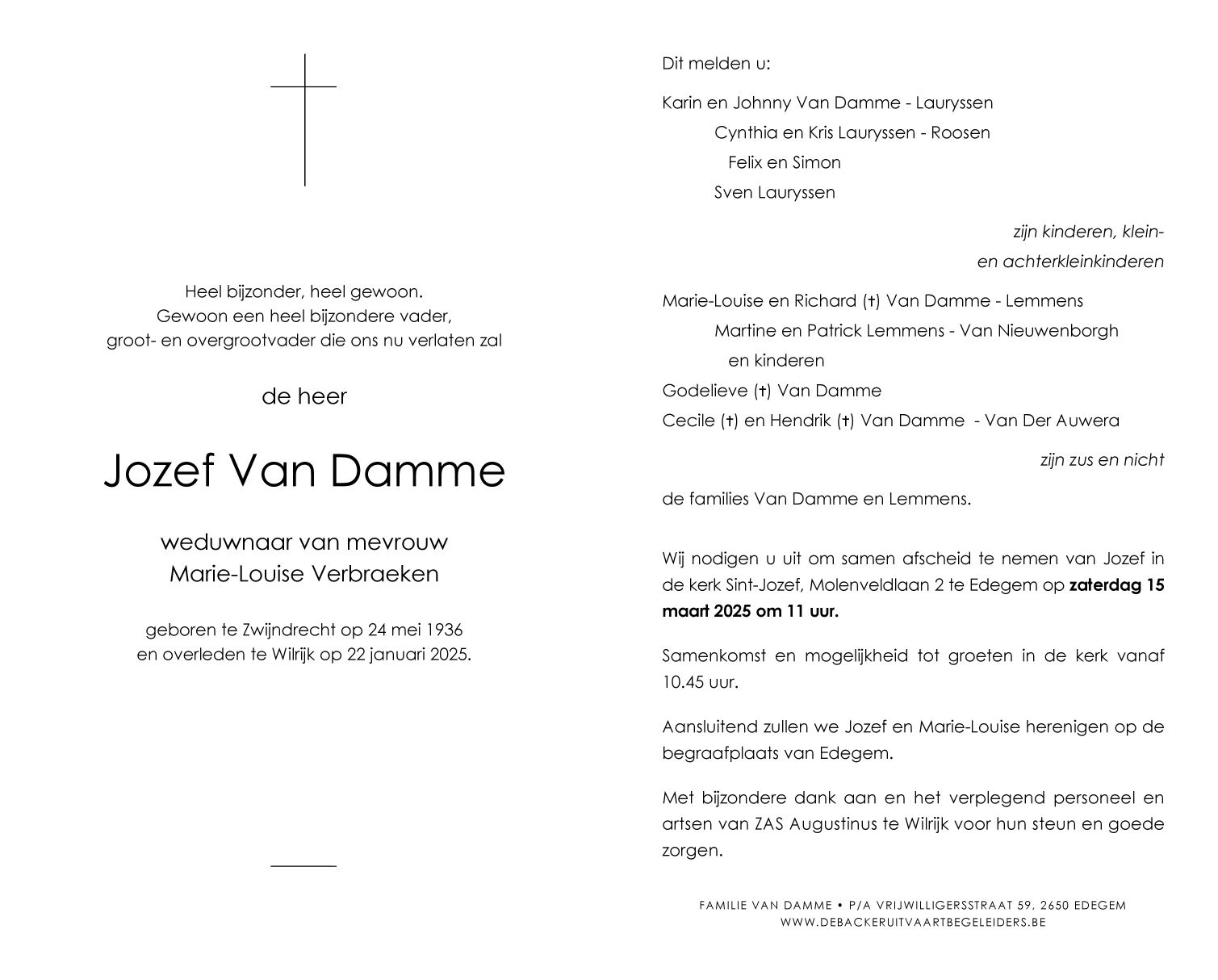 Overleden te Wilrijk (Antwerpen) (2610) op woensdag 22 januari 2025 op 88-jarige leeftijd