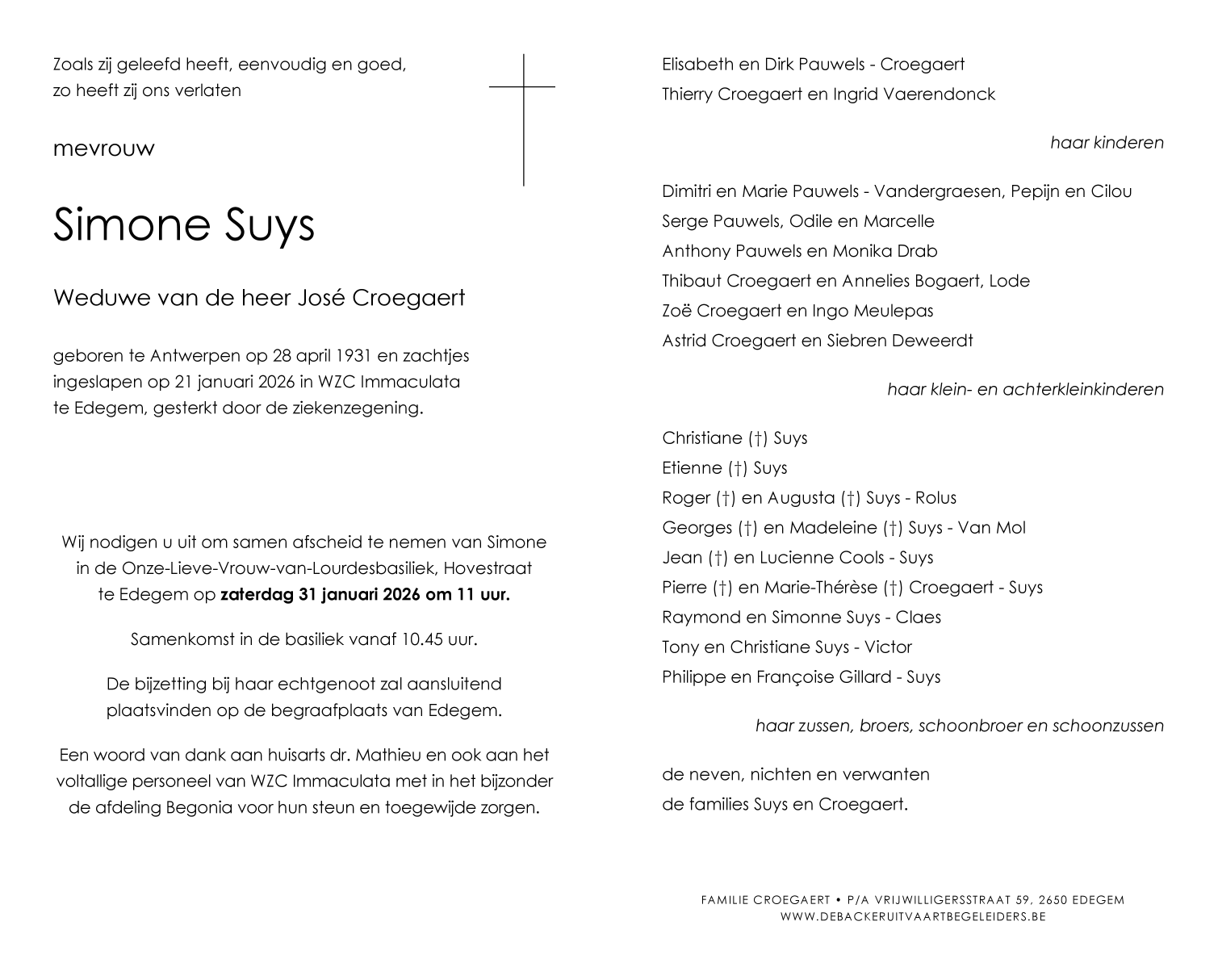 Overleden te Edegem (2650) op woensdag 21 januari 2026 op 94-jarige leeftijd